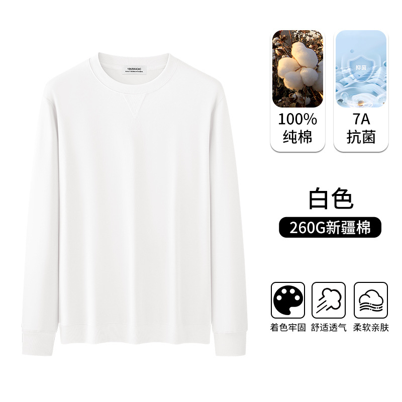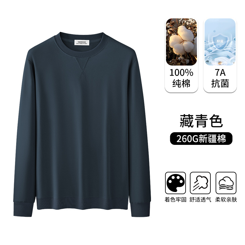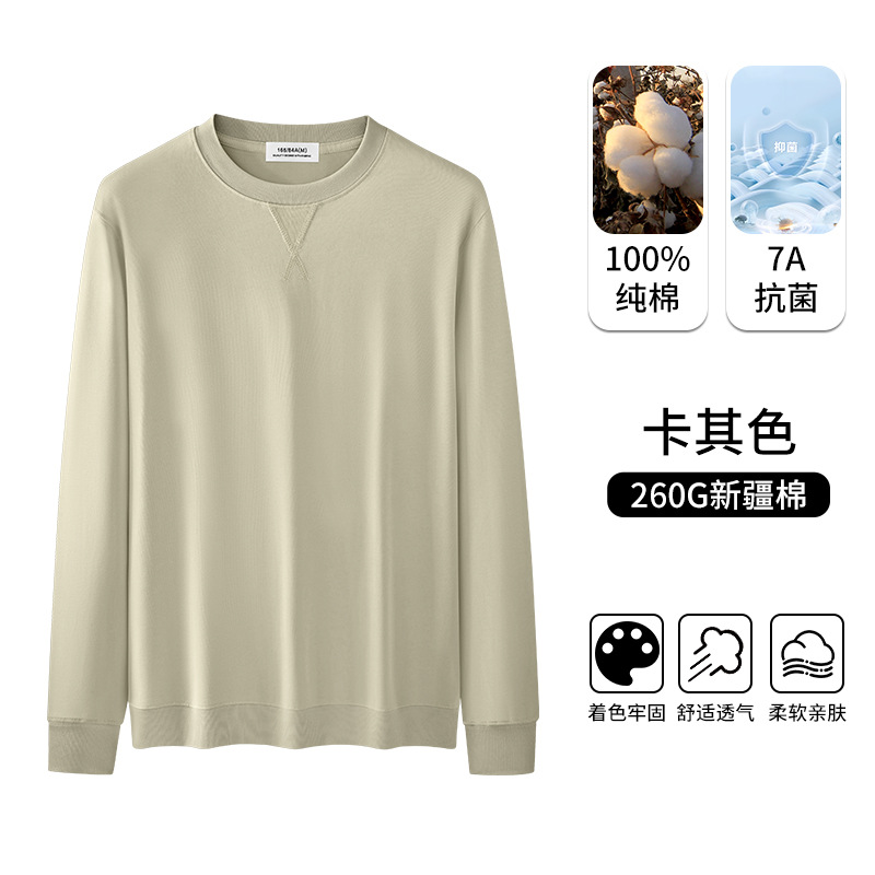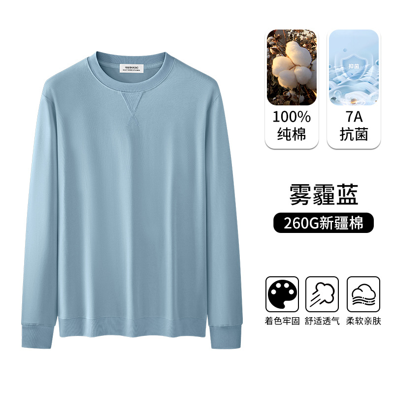 260G 헤비웨이트 순면 스웨트셔츠 남성용 루즈핏 테리 탑 가을 겨울 신상 라운드넥 긴팔 티셔츠 이너웨어 남성용