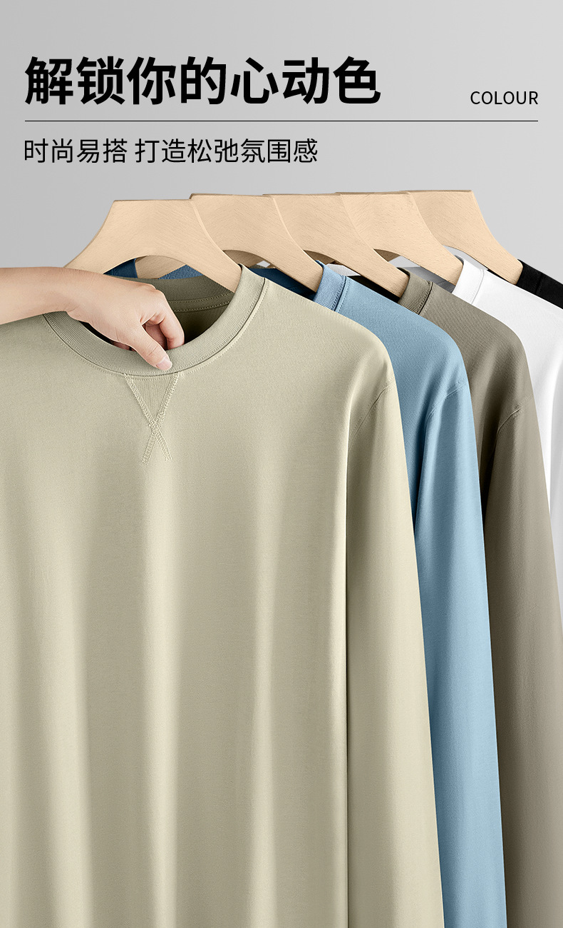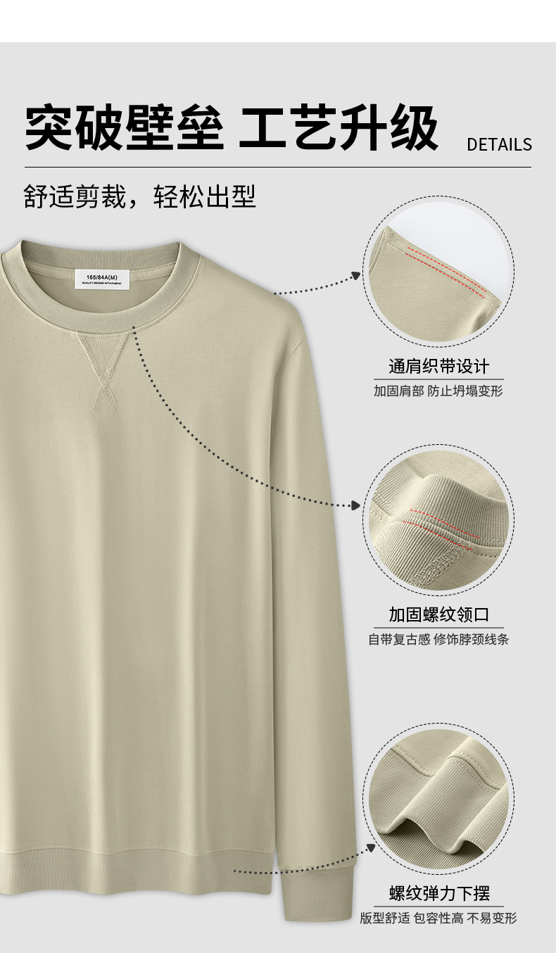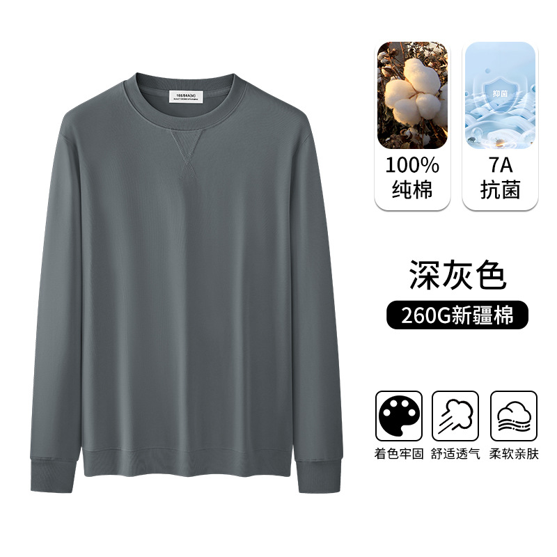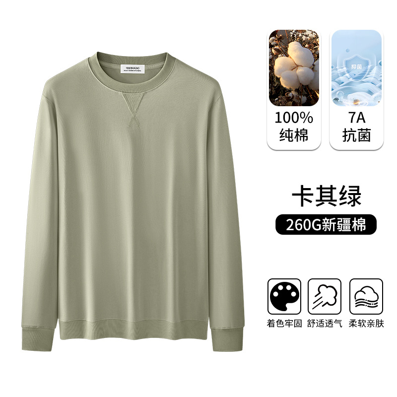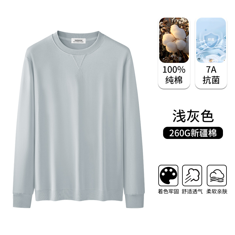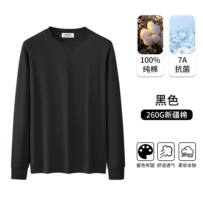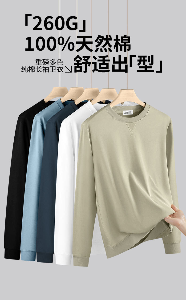 260G 헤비웨이트 순면 스웨트셔츠 남성용 루즈핏 테리 탑 가을 겨울 신상 라운드넥 긴팔 티셔츠 이너웨어 남성용스토어 가기