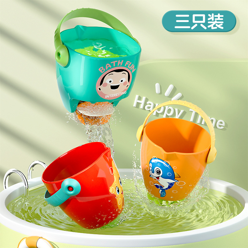 아기 목욕 장난감 만화 아기 미니 샤워 작은 양동이 계층화 된 다채로운 물 놀이 욕실 장난감