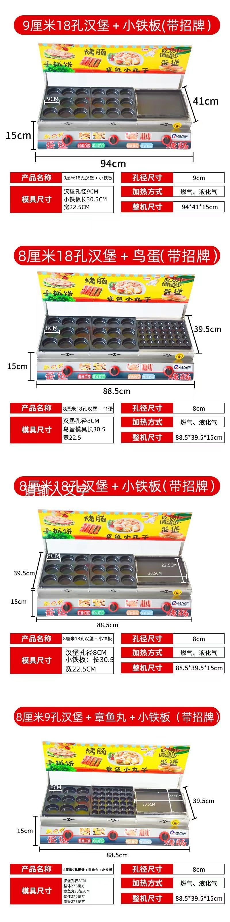 새로운 계란 버거, 계란 버거, 구운 소시지, 문어 공, 새알 철판, 상업용 가스 조합 기계