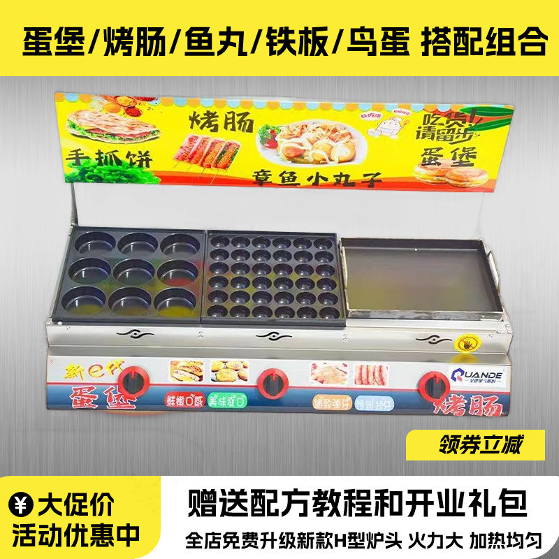 새로운 계란 버거, 계란 버거, 구운 소시지, 문어 공, 새알 철판, 상업용 가스 조합 기계스토어 가기