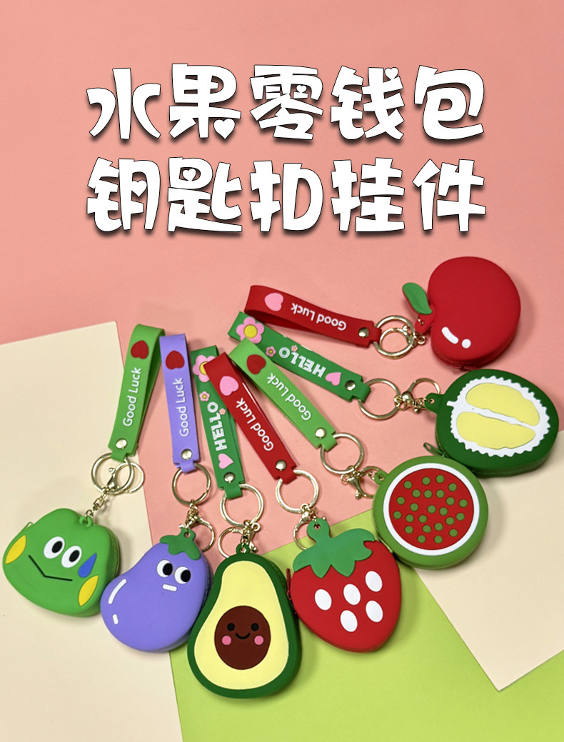 창조적 인 실리콘 과일 동전 지갑 키 체인 펜던트 절묘한 키 체인 교수형 카드 가방 어린이 작은 선물 도매