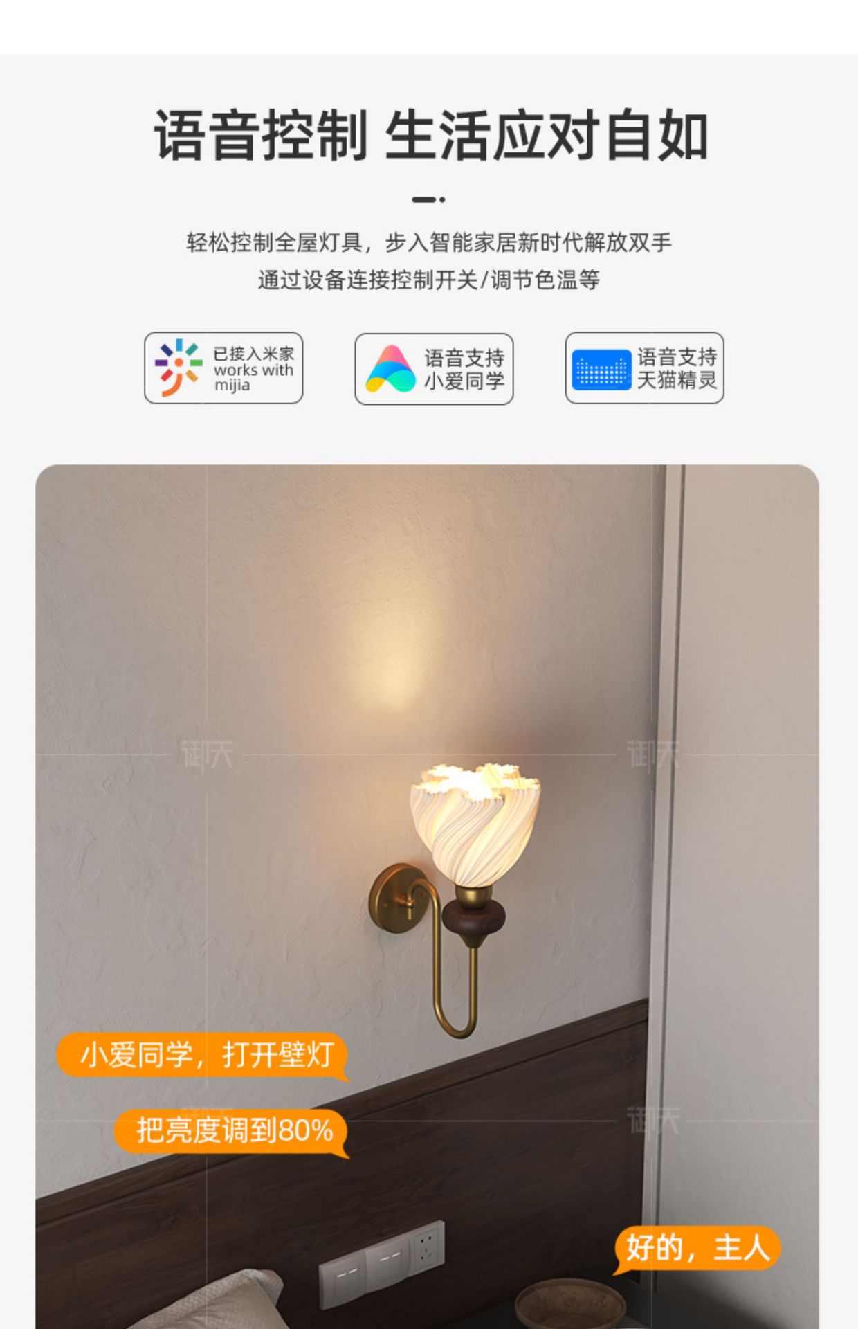 • 중세 스타일 스커트 벽 램프 무단계 디밍(Xiaoai 음성 제어 지원)