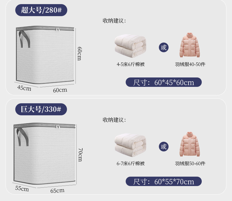 부직포 줄무늬 옷 퀼트 보관 가방 이동 포장 보관 바구니스토어 가기
