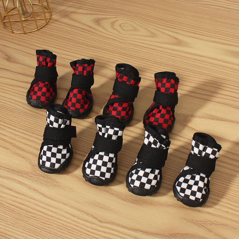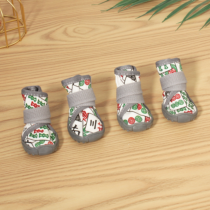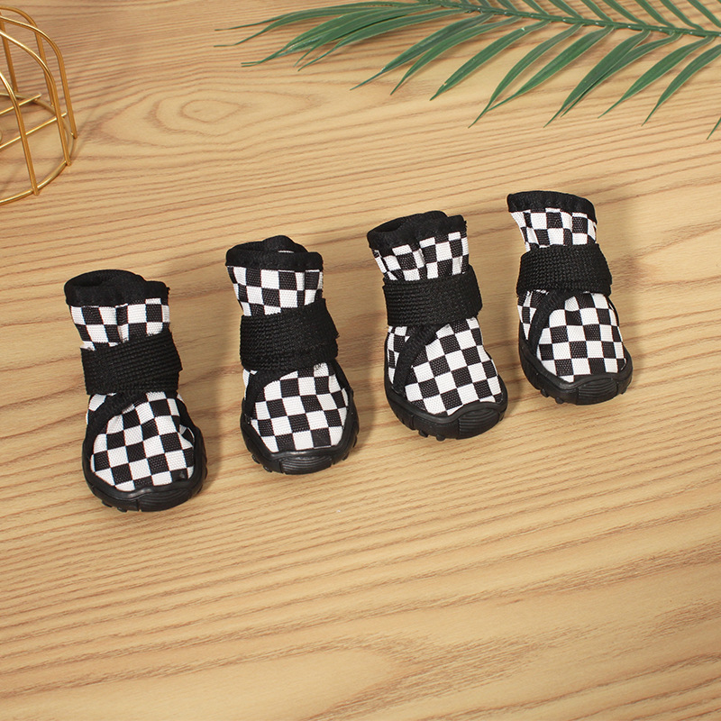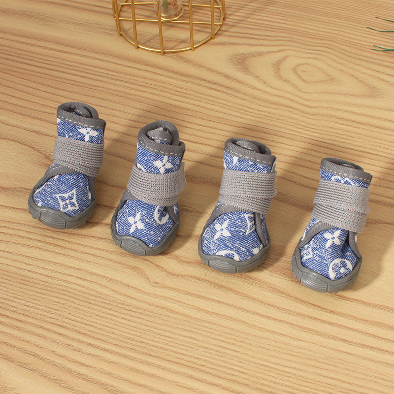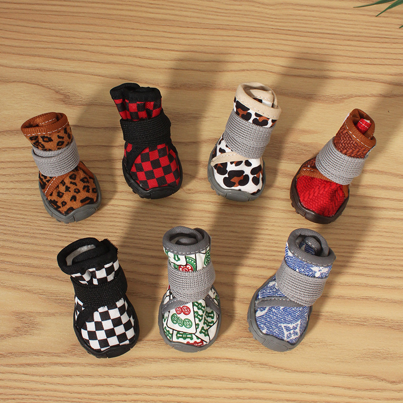 따뜻한 면화 기모 가을과 겨울 레오파드 무늬 국경 새 애완 동물 신발 중소 강아지는 발 스노우 부츠를 떨어 뜨리지 않습니다.