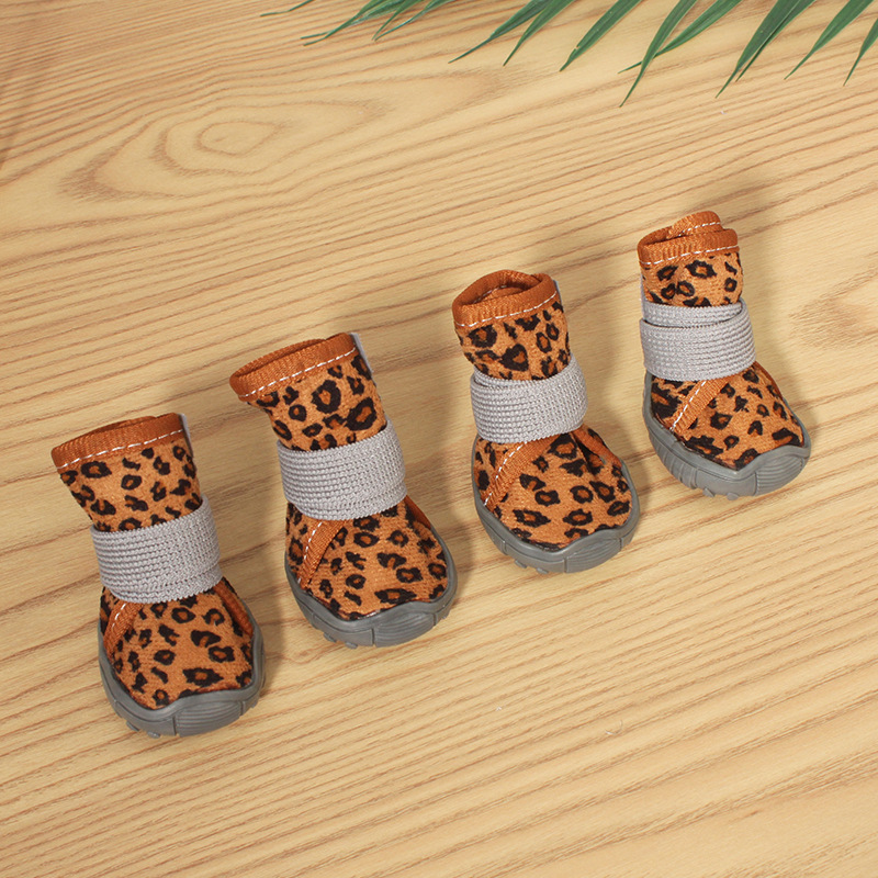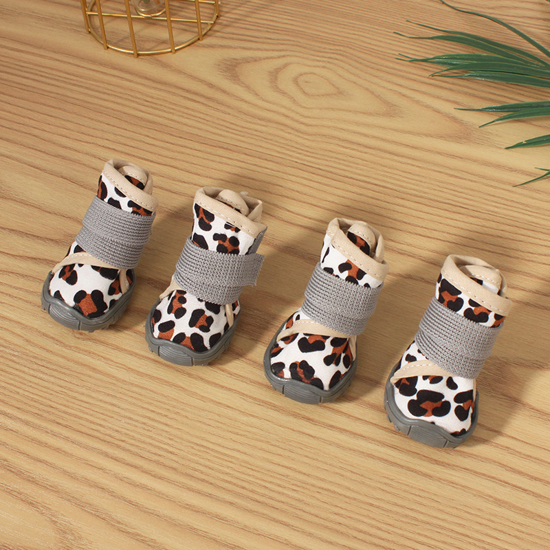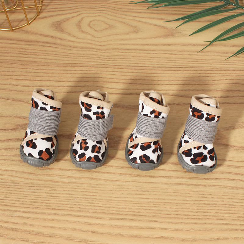따뜻한 면화 기모 가을과 겨울 레오파드 무늬 국경 새 애완 동물 신발 중소 강아지는 발 스노우 부츠를 떨어 뜨리지 않습니다.스토어 가기