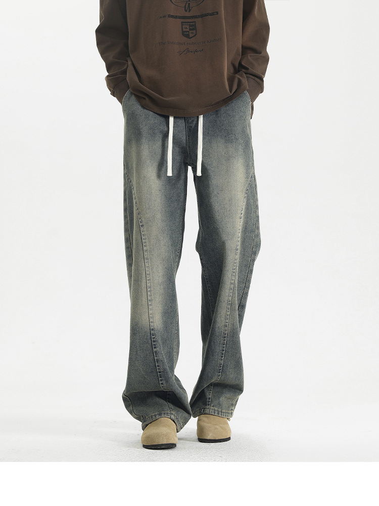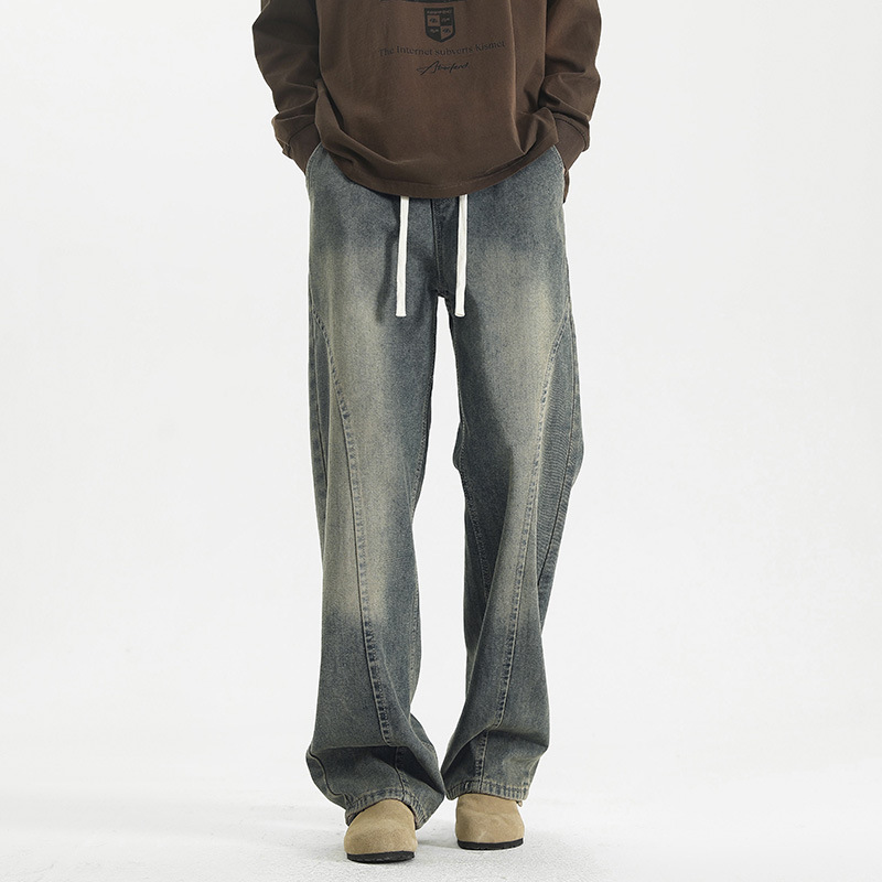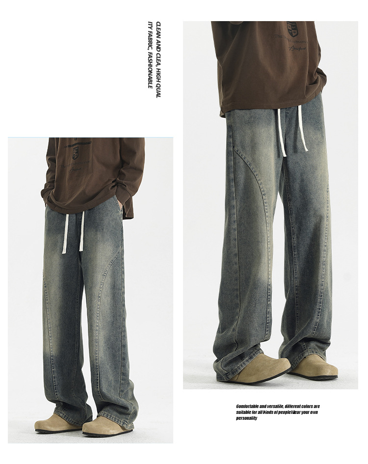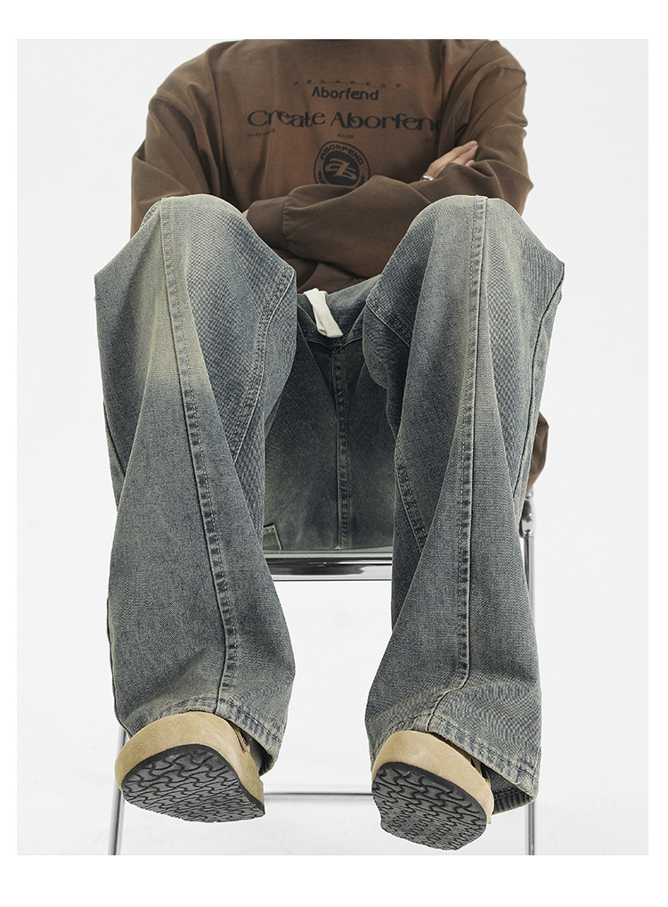 미국 청바지 남성 봄과 가을 새로운 느슨한 캐주얼 마체테 바지 2024 새로운 패션 브랜드 남성 스트레이트 바지