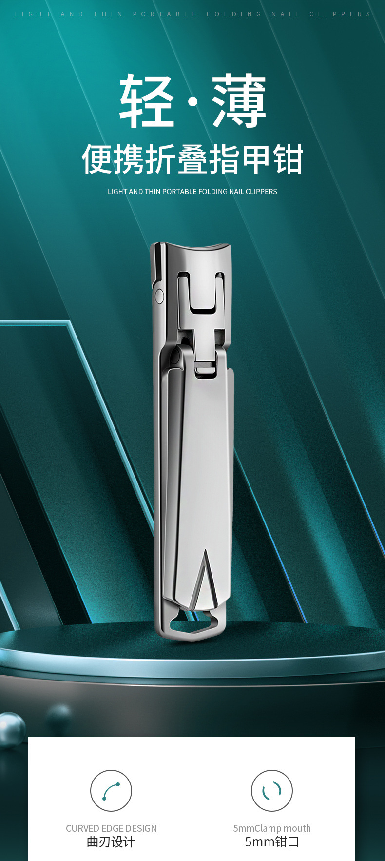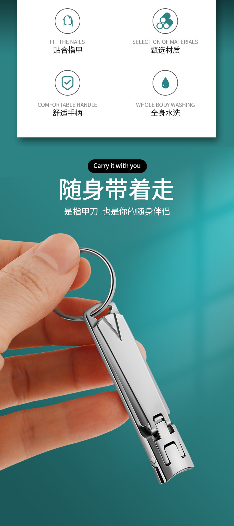 휴대용 단일 팩 캐리 온 키 체인 네일 클리퍼 초박형 접이식 네일 클리퍼 파우더 스테인레스 스틸 경량 네일 클리퍼