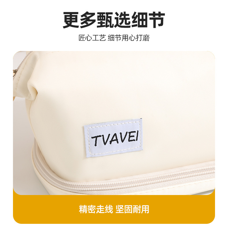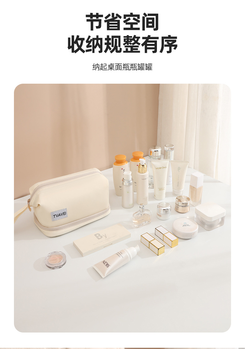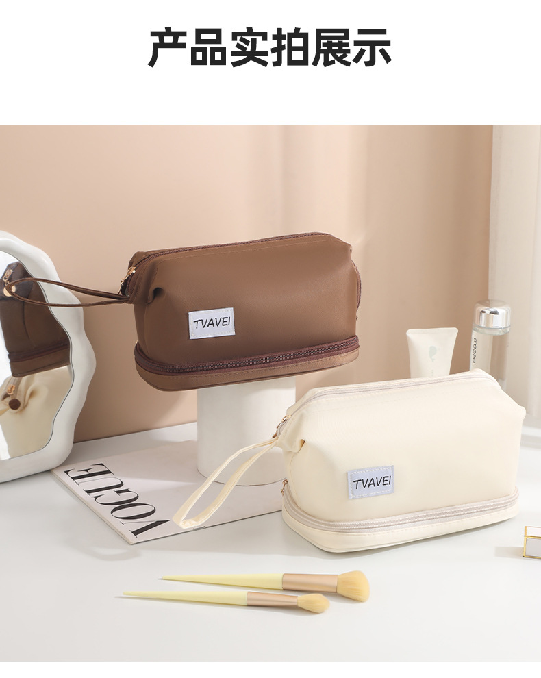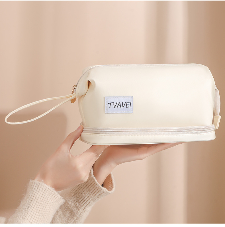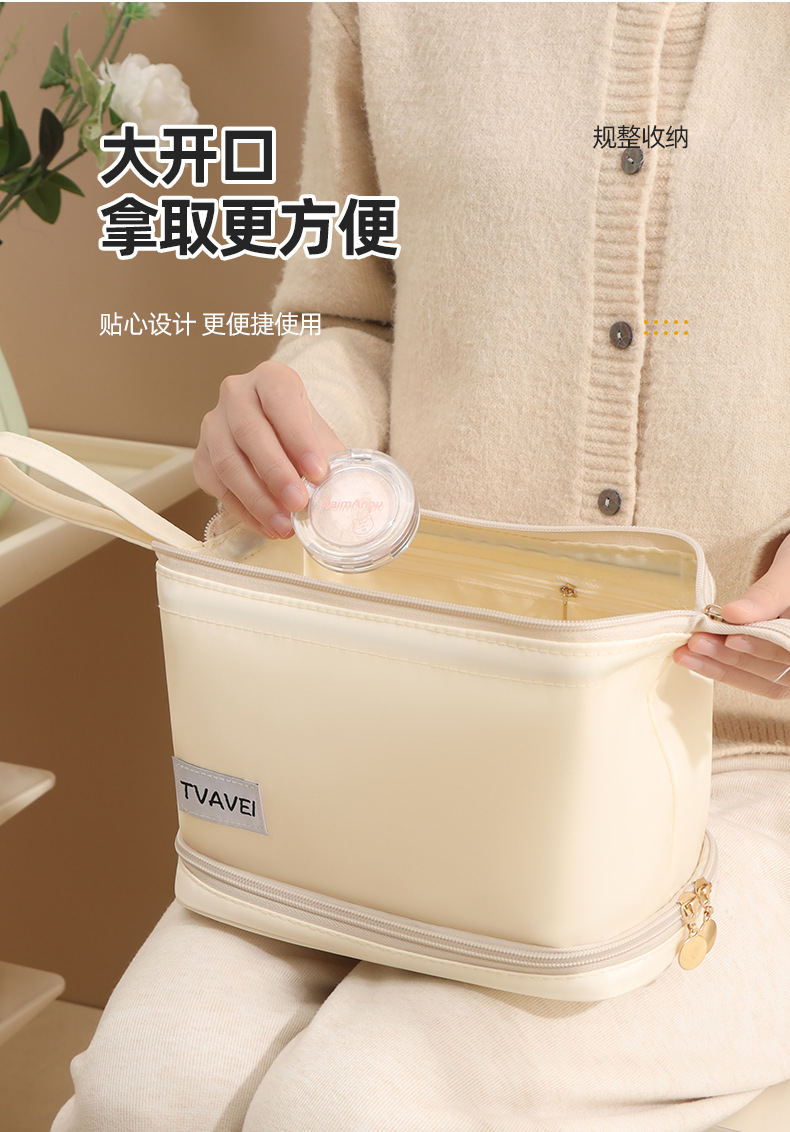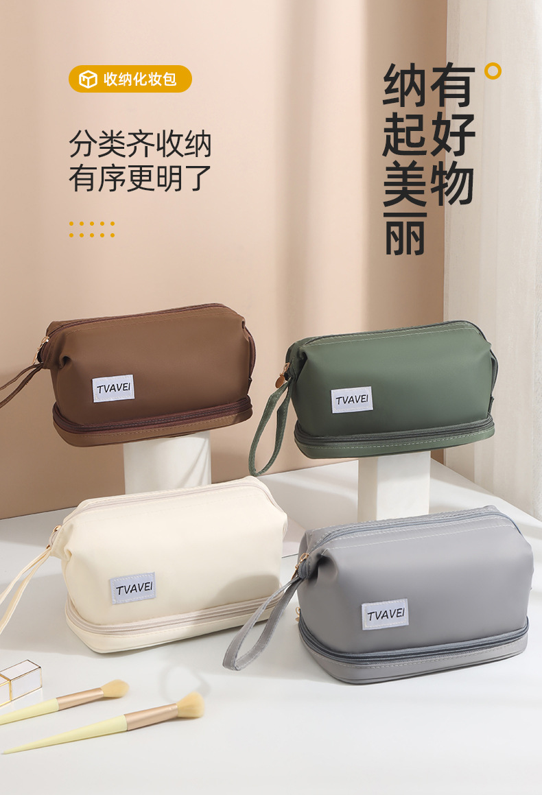 Runhui 능직 더블 레이어 화장품 가방 솔리드 컬러 비즈니스 여행 세면 용품 가방 대용량 화장품 보관 가방 더블 레이어스토어 가기
