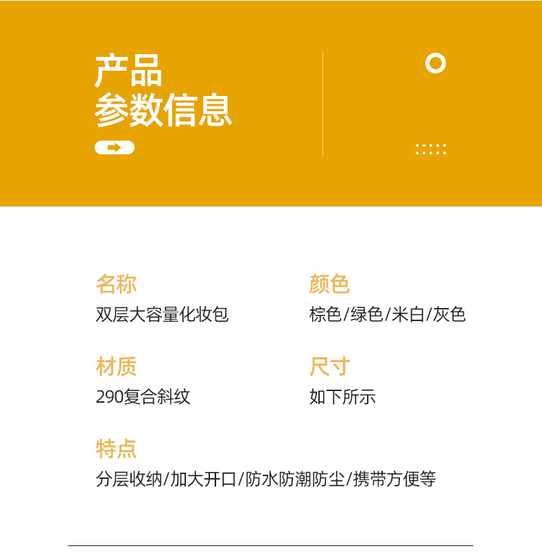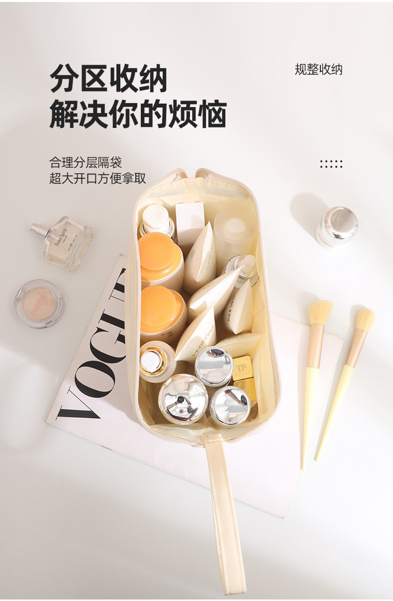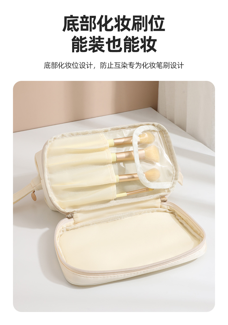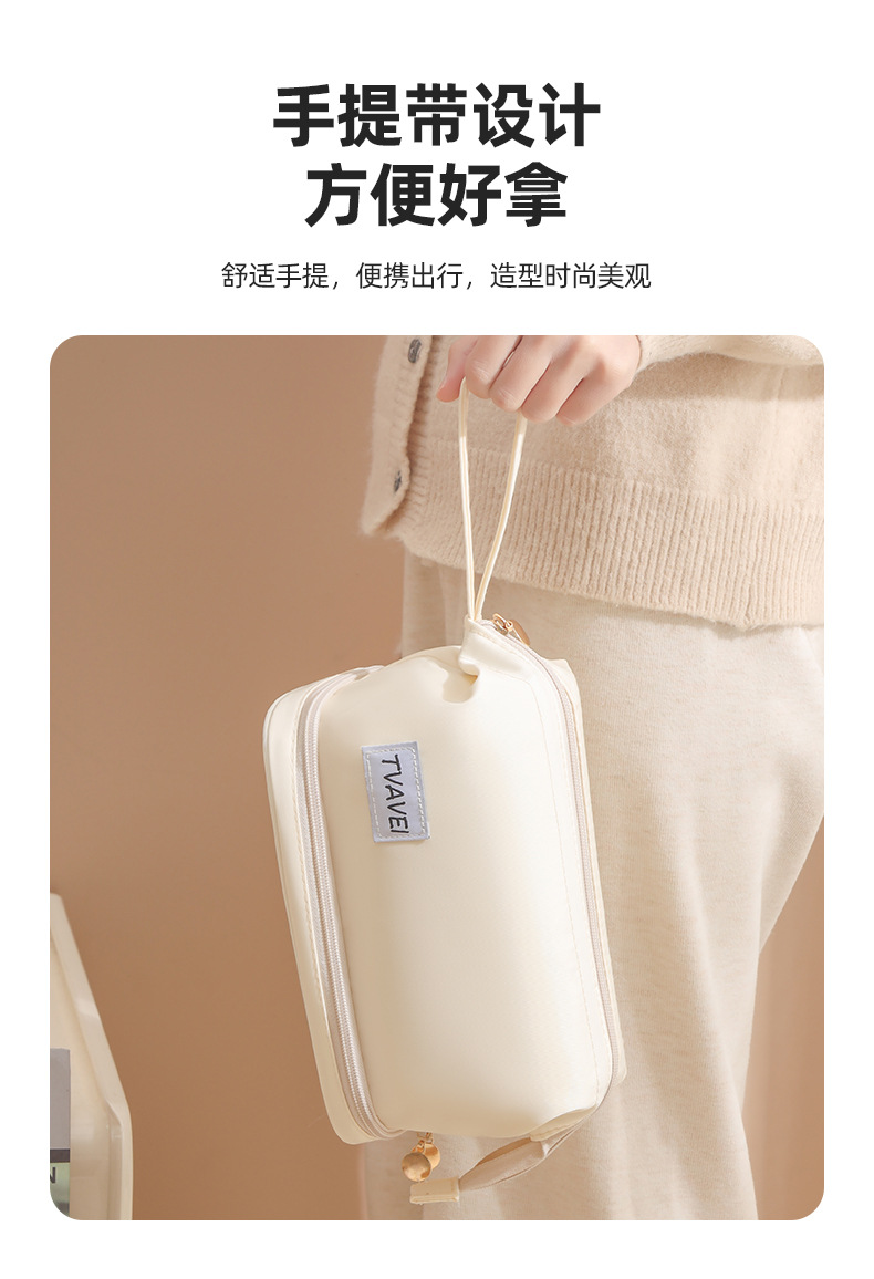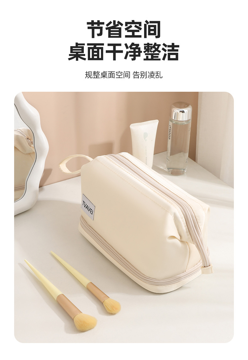 Runhui 능직 더블 레이어 화장품 가방 솔리드 컬러 비즈니스 여행 세면 용품 가방 대용량 화장품 보관 가방 더블 레이어스토어 가기