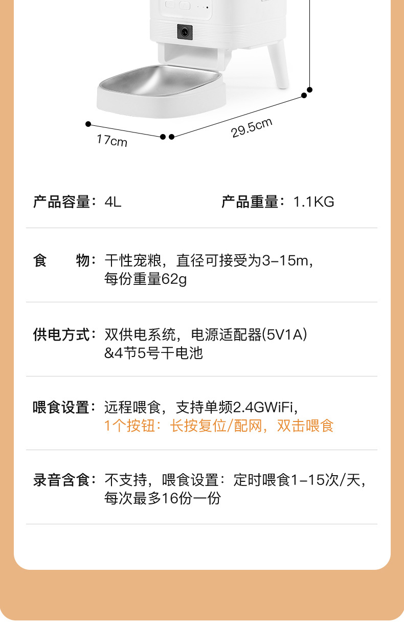 애완 동물 자동 피더 지능형 타이밍 원격 비디오 HD 광각 카메라 고양이 개 피더