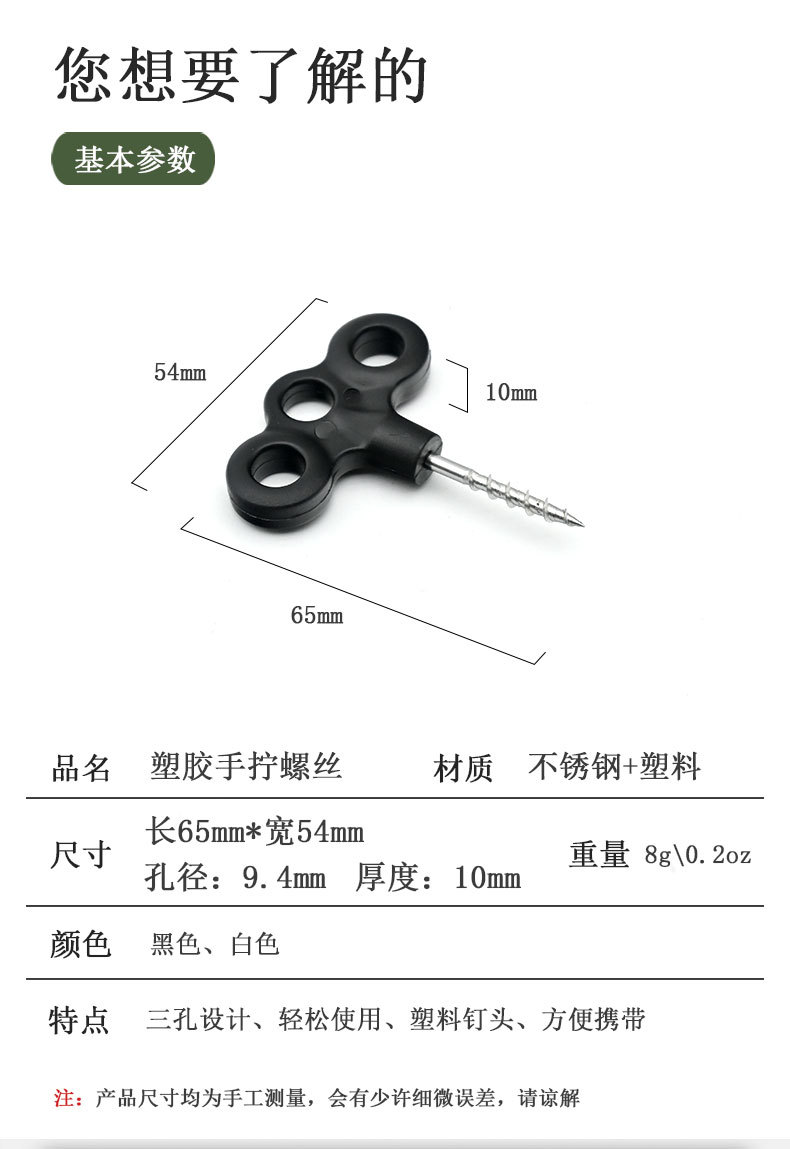 야외 플라스틱 그라운드 네일 빛나는 텐트 캠핑 방풍 로프 고정 버클 세 눈 스테인레스 스틸 스레드 그라운드 네일 도매