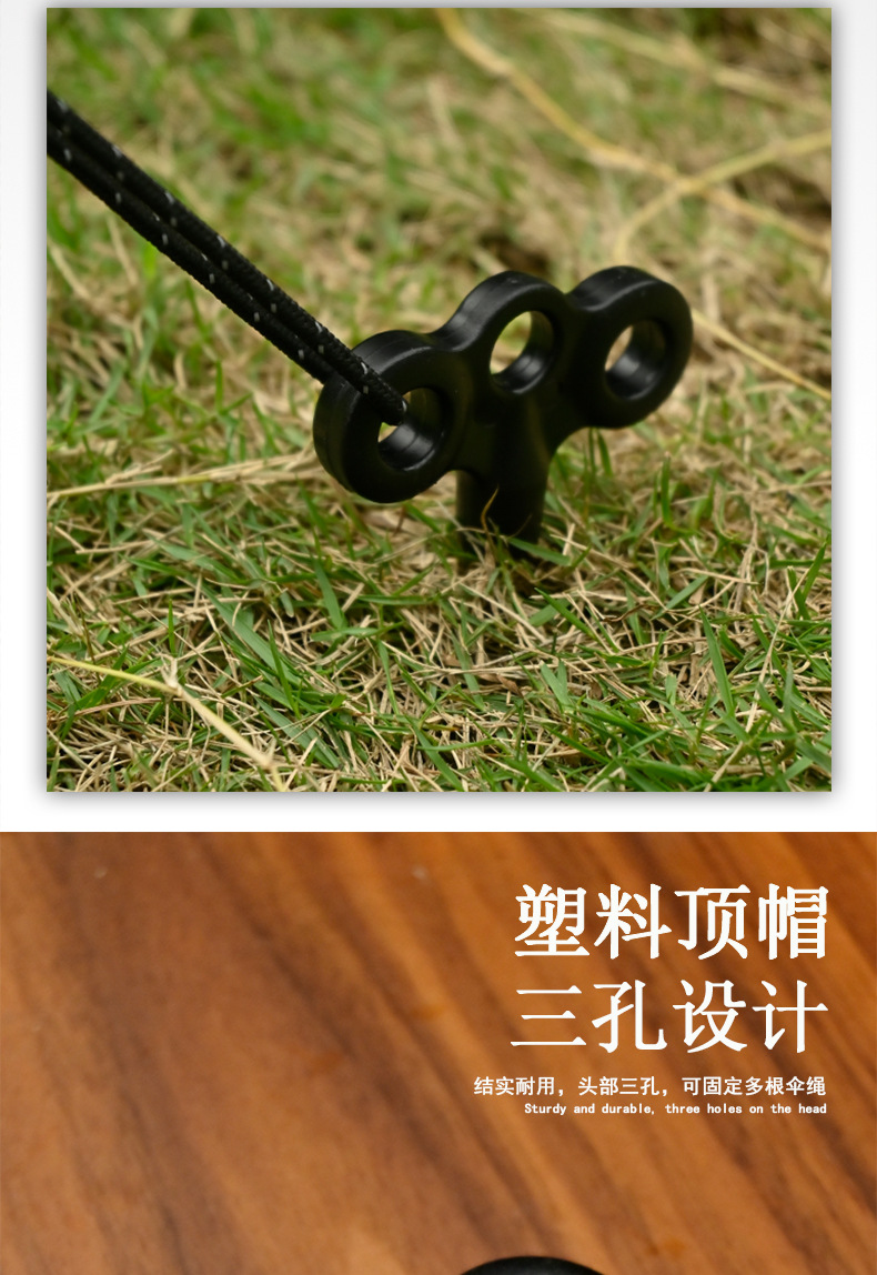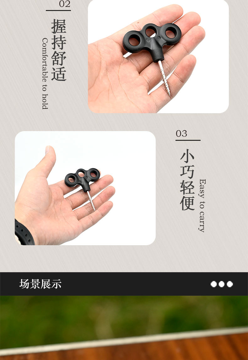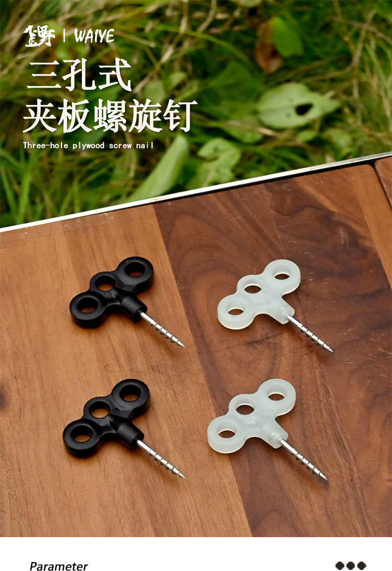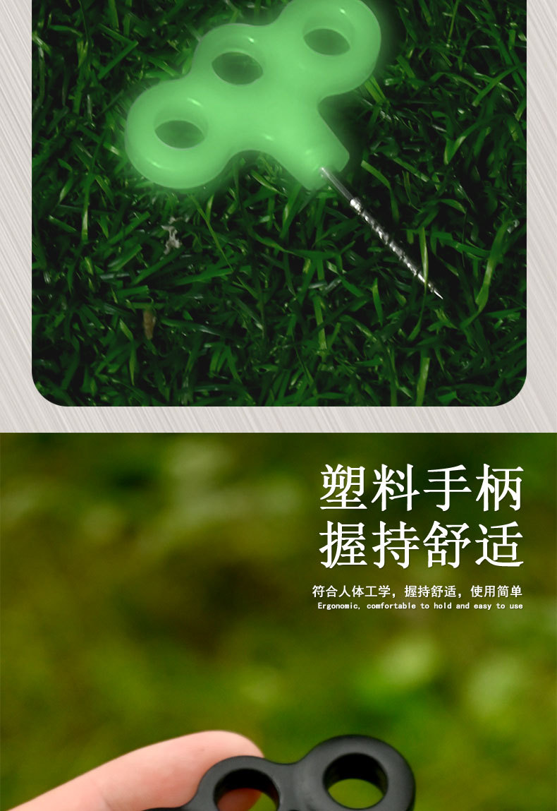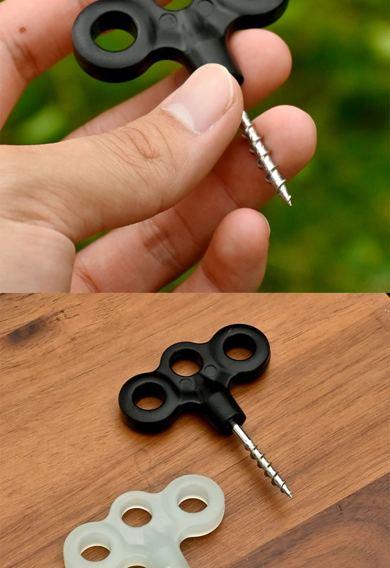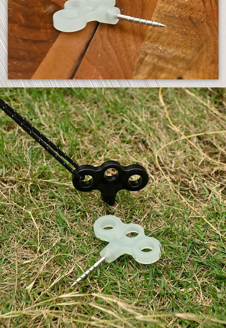 야외 플라스틱 그라운드 네일 빛나는 텐트 캠핑 방풍 로프 고정 버클 세 눈 스테인레스 스틸 스레드 그라운드 네일 도매스토어 가기