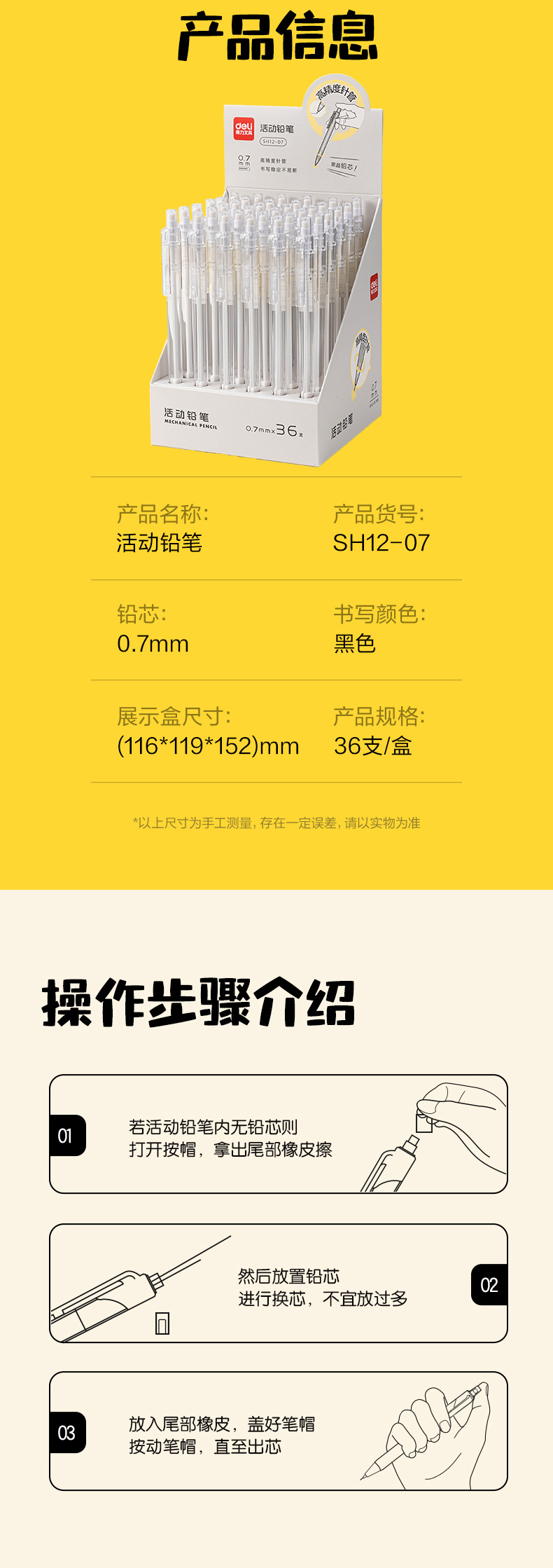 델리 SH12 플라스틱 이동식 연필 0.5mm/0.7mm 자동 리드 아웃 어린이 및 학생 쓰기 시험스토어 가기