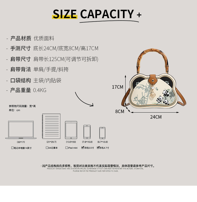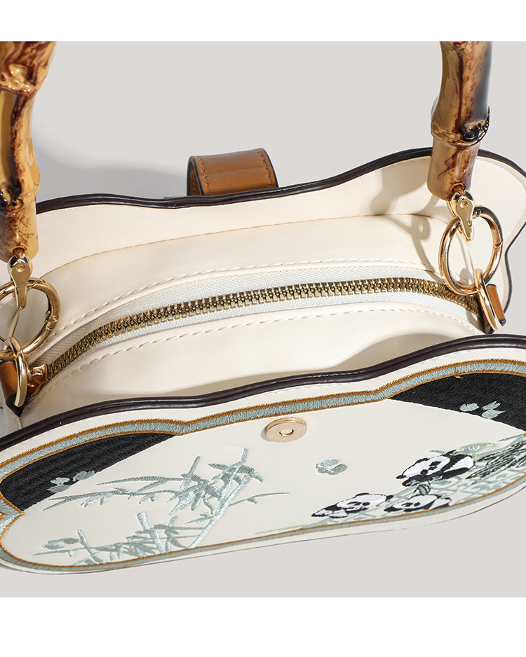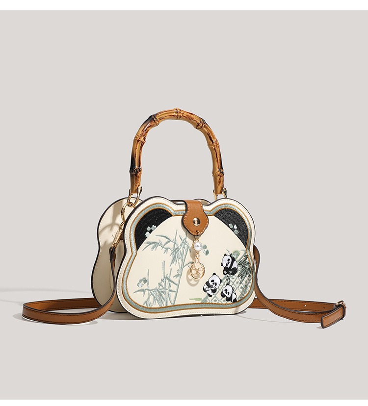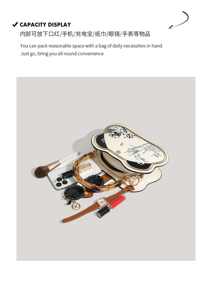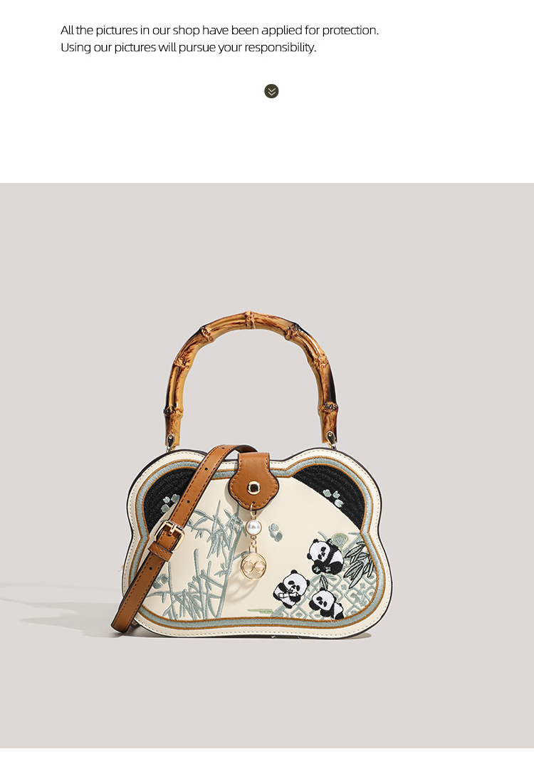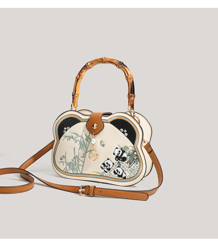 CHARHP&KEJNT 여성용 정품 새로운 중국 스타일 대나무 핸드백 2025 새로운 만화 팬더 싱글 숄더 크로스 바디 백스토어 가기