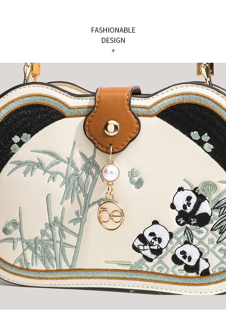 CHARHP&KEJNT 여성용 정품 새로운 중국 스타일 대나무 핸드백 2025 새로운 만화 팬더 싱글 숄더 크로스 바디 백