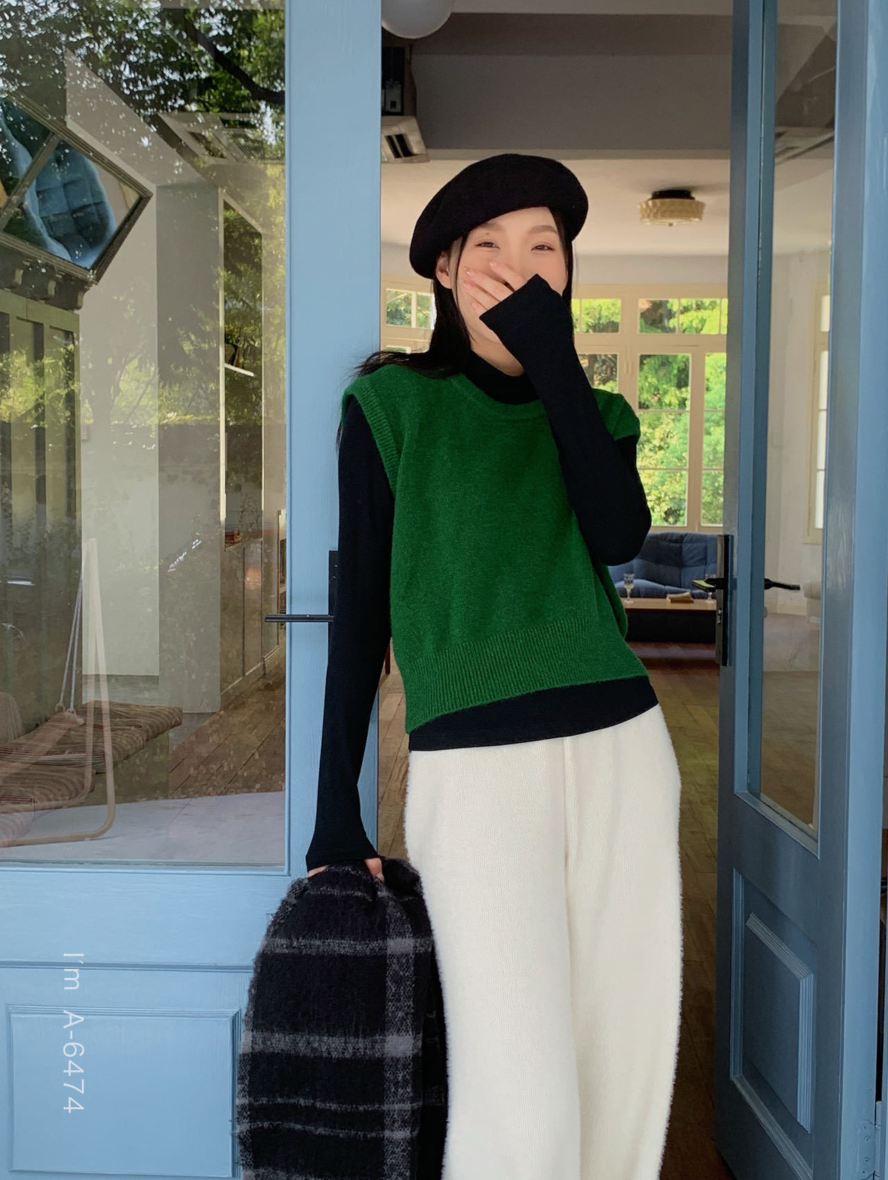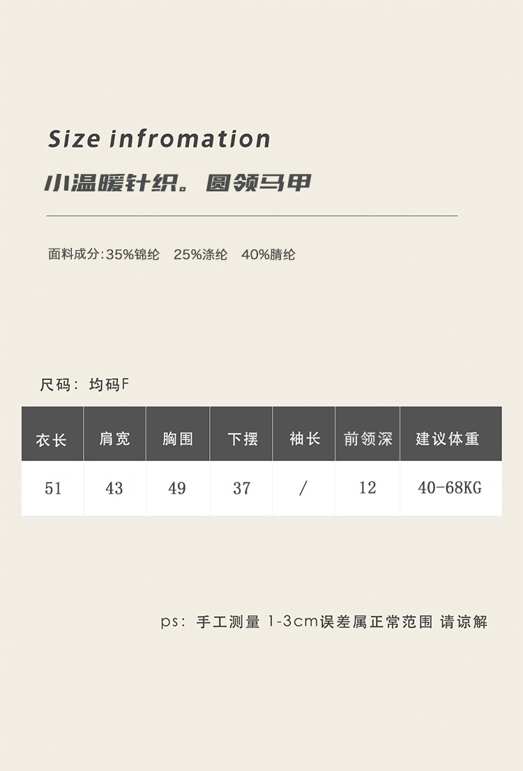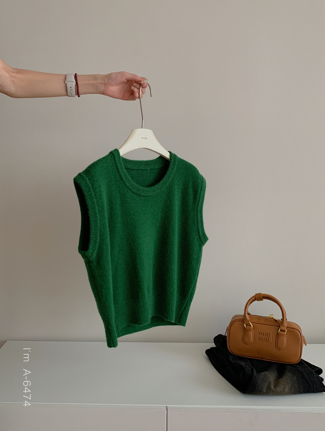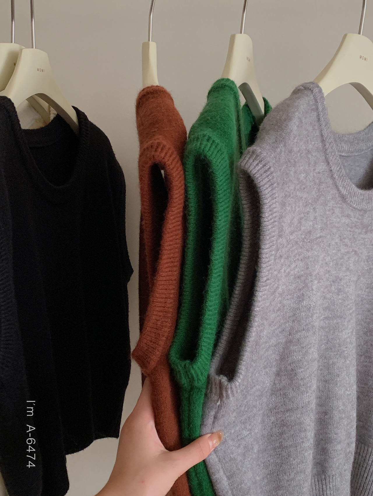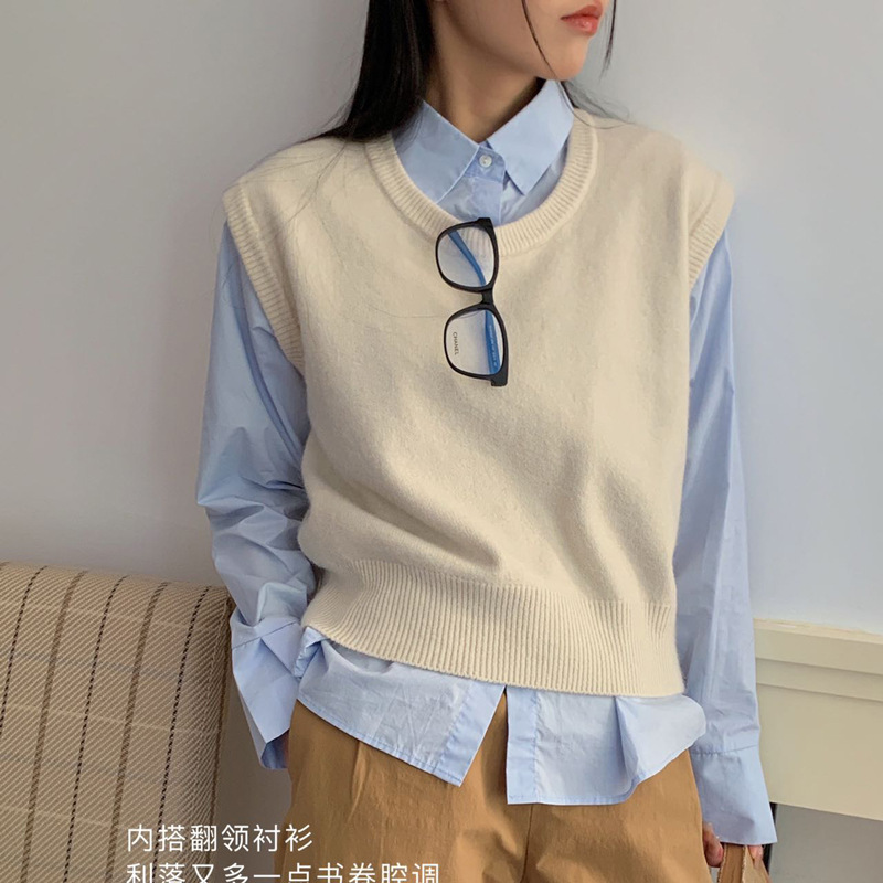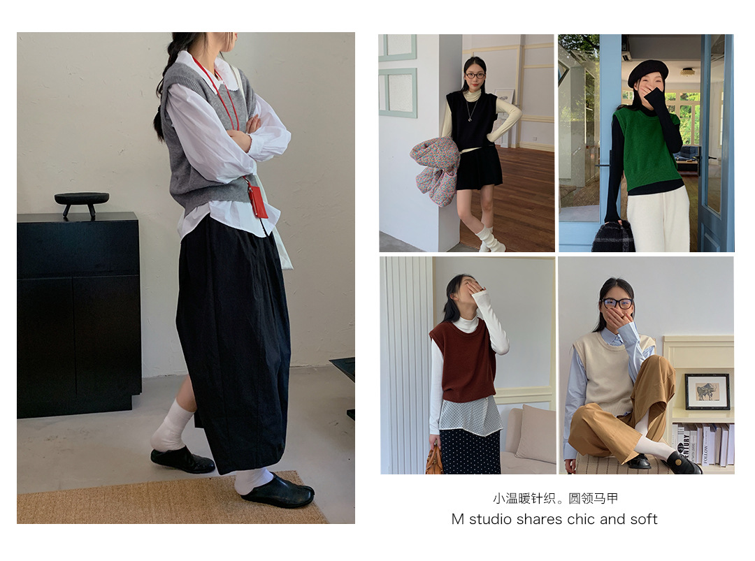 Du 작은 집 가을과 겨울 새로운 작은 따뜻한 뜨개질. 둥근 목을 가진 여자 한국 스타일 유행 조끼스토어 가기