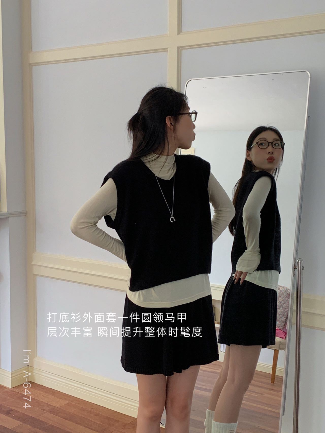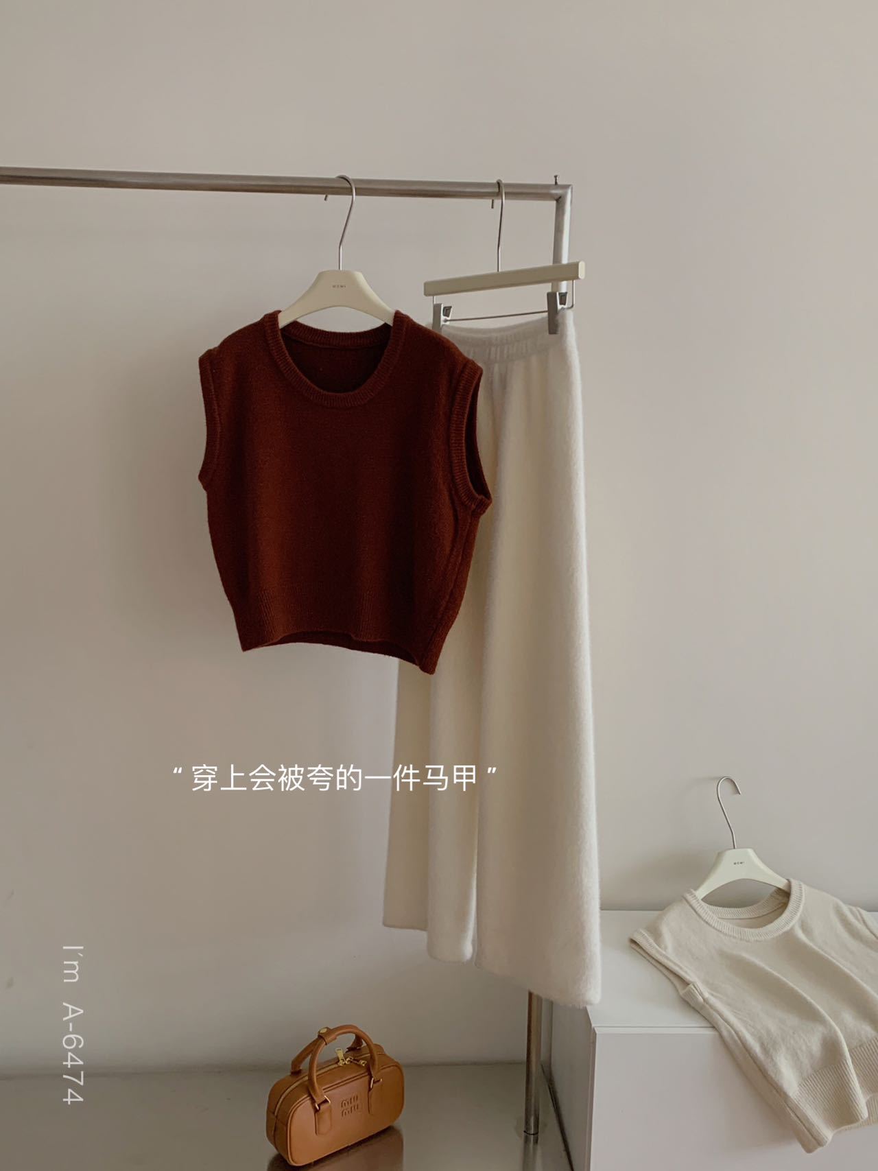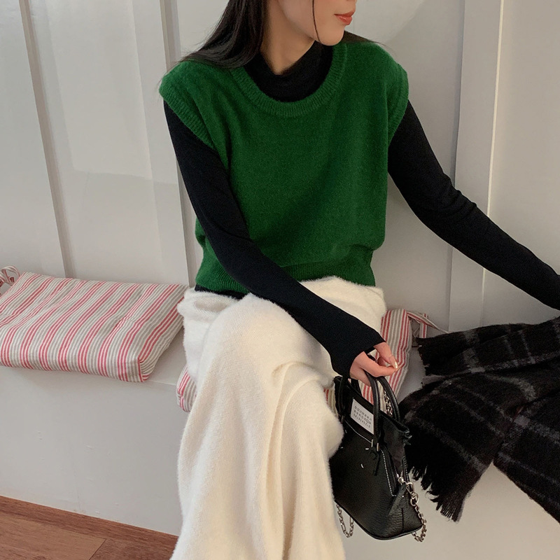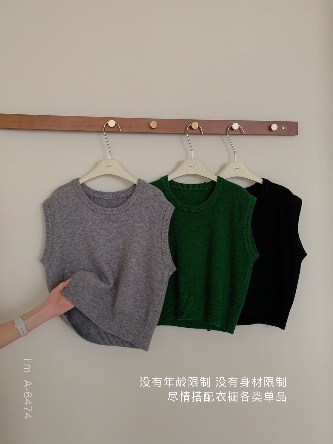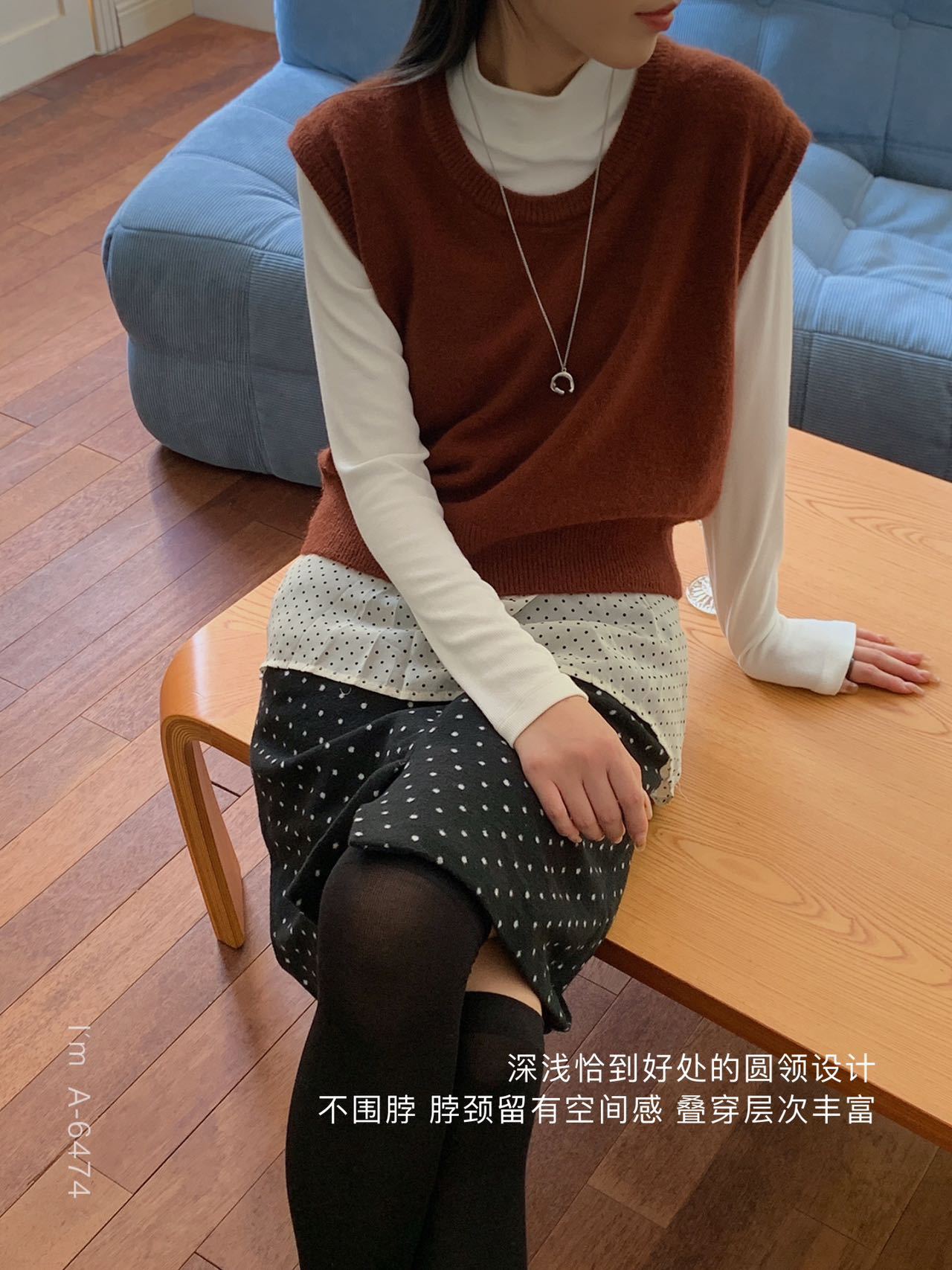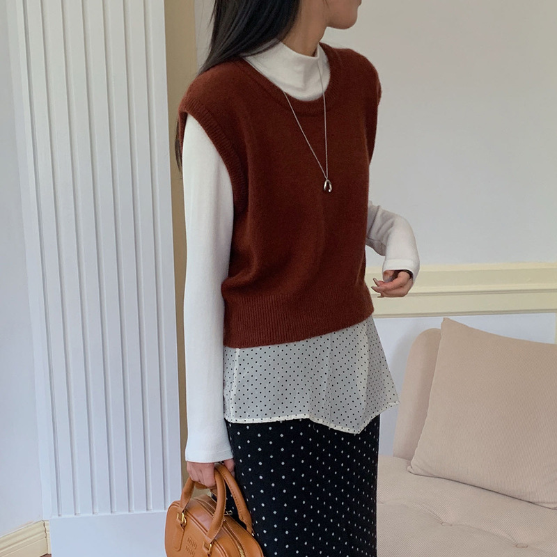 Du 작은 집 가을과 겨울 새로운 작은 따뜻한 뜨개질. 둥근 목을 가진 여자 한국 스타일 유행 조끼스토어 가기