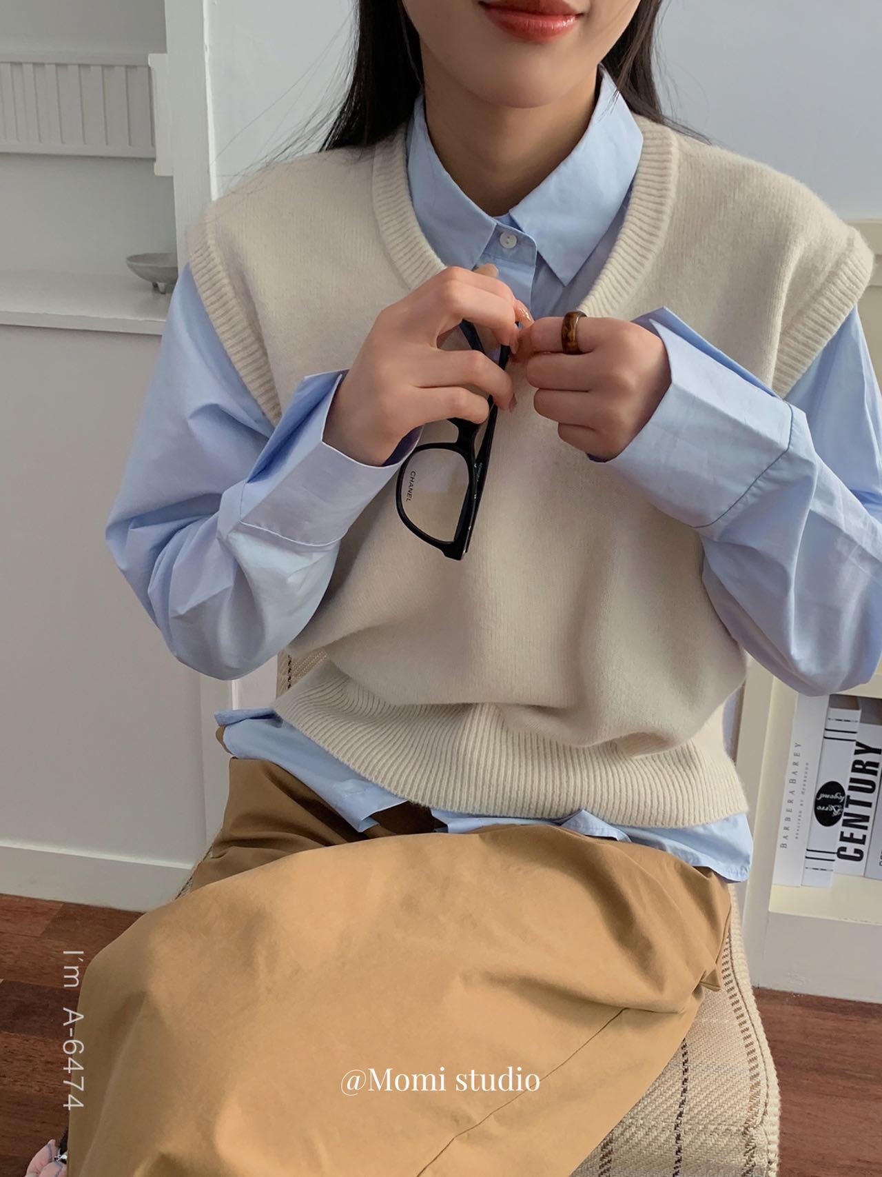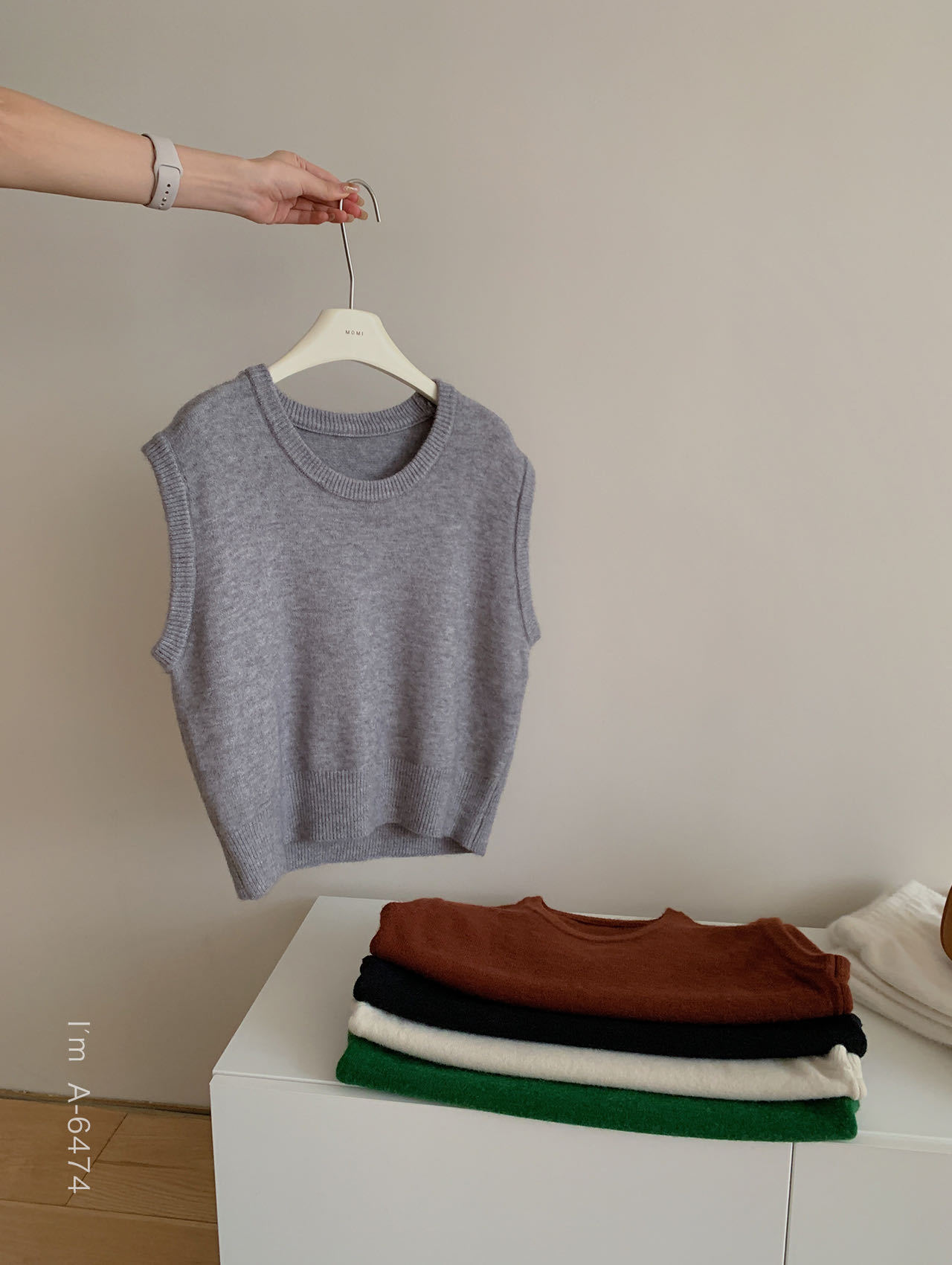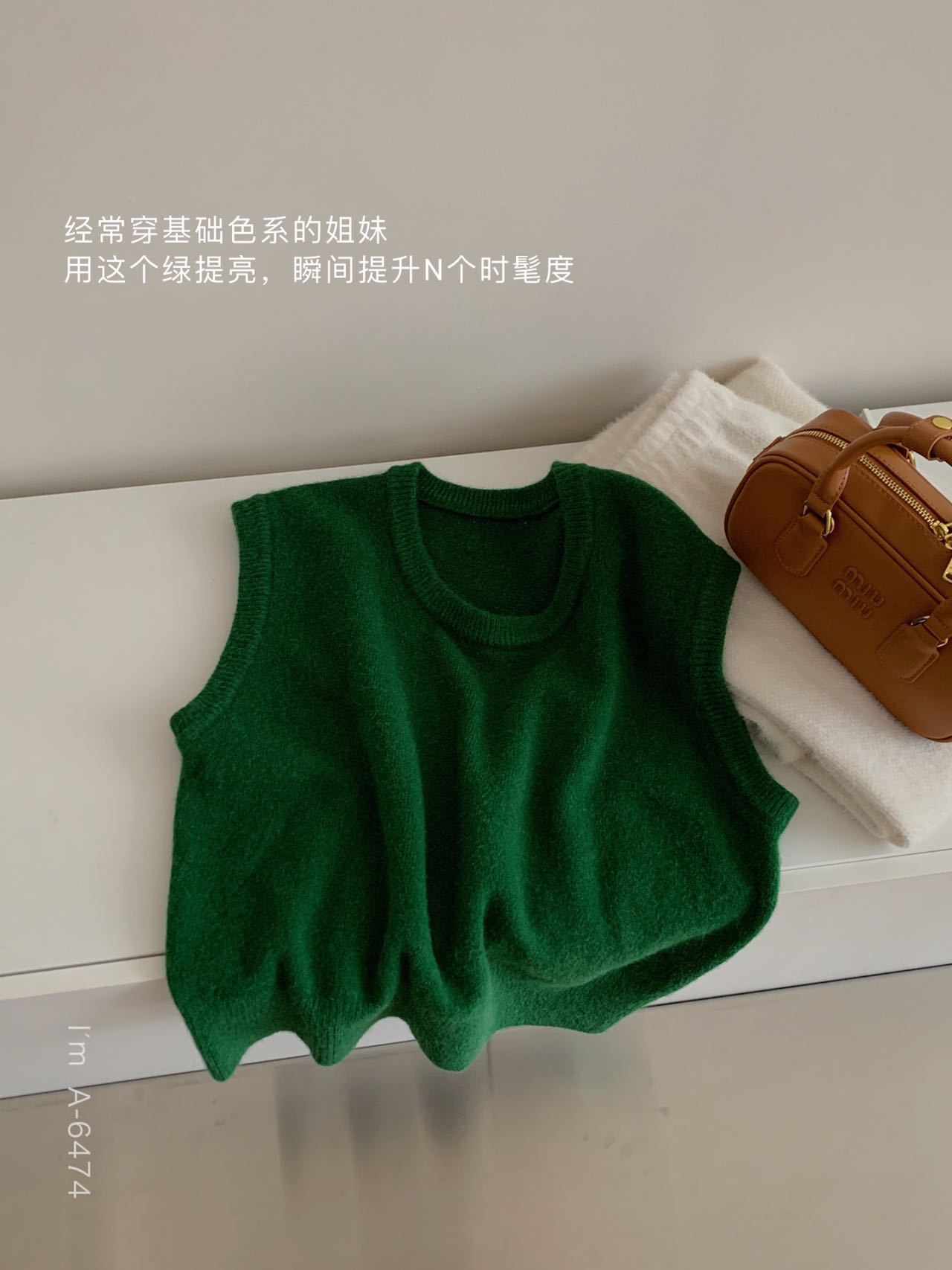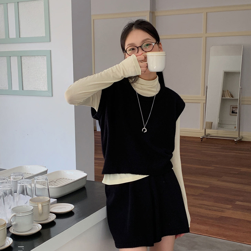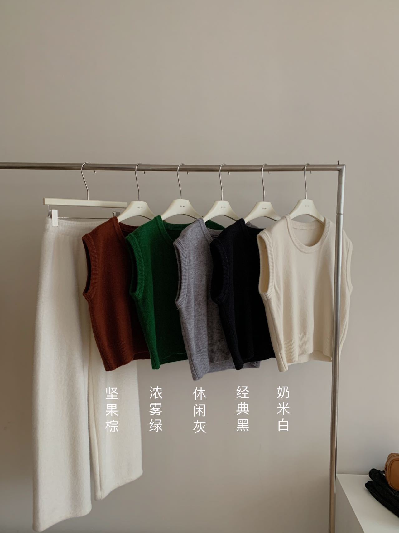 Du 작은 집 가을과 겨울 새로운 작은 따뜻한 뜨개질. 둥근 목을 가진 여자 한국 스타일 유행 조끼스토어 가기