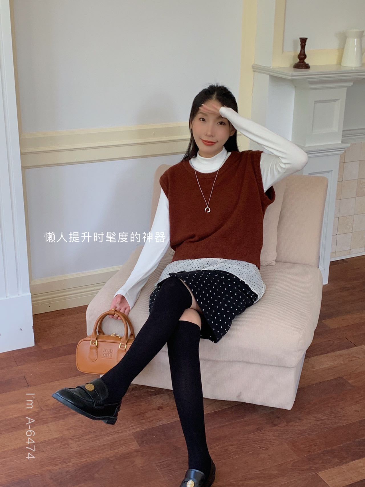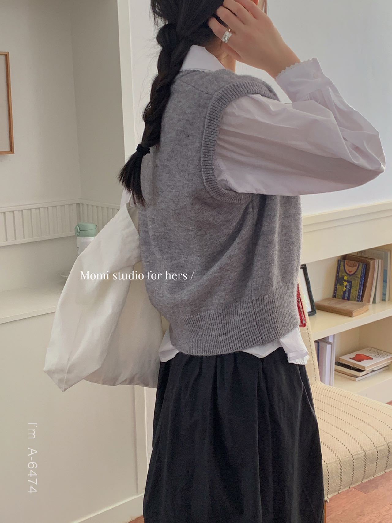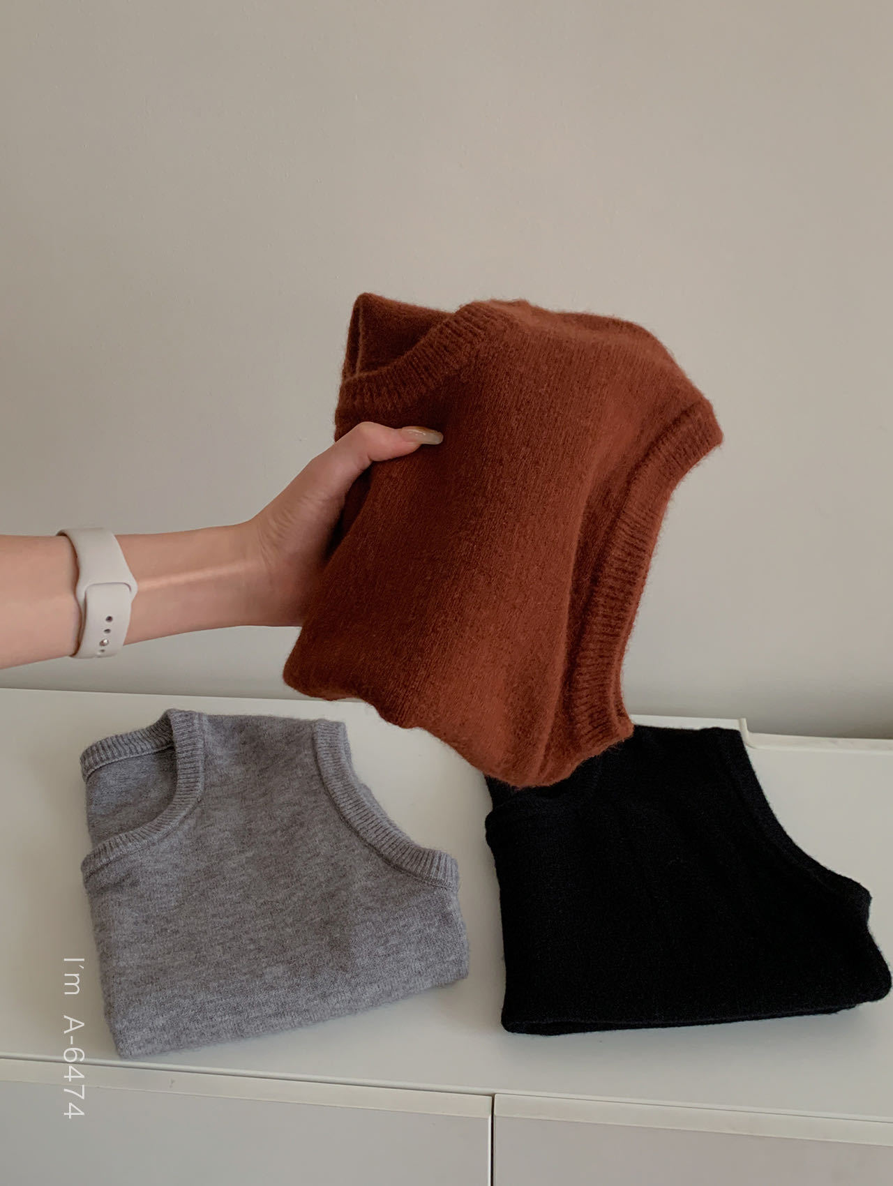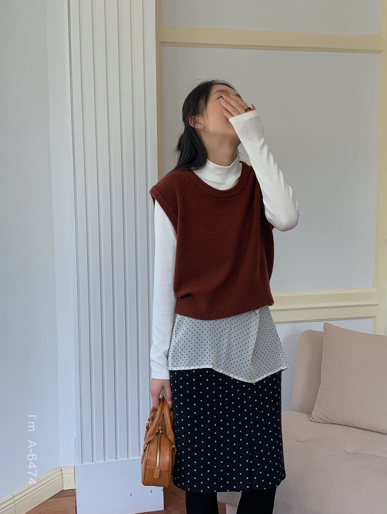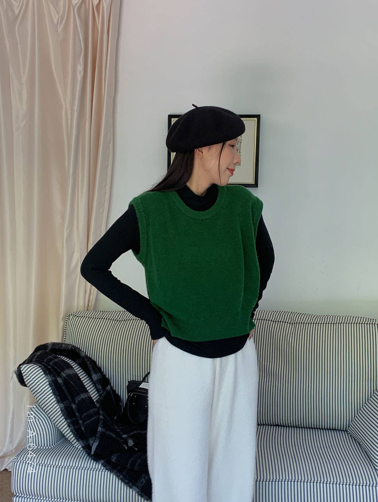 Du 작은 집 가을과 겨울 새로운 작은 따뜻한 뜨개질. 둥근 목을 가진 여자 한국 스타일 유행 조끼스토어 가기