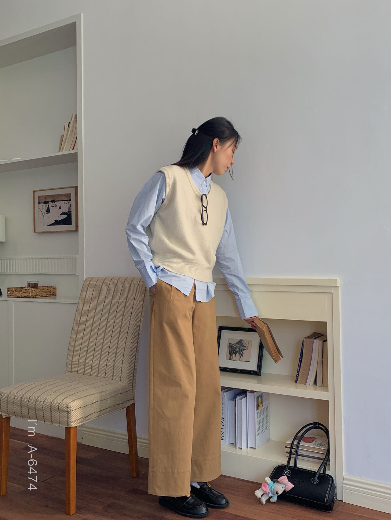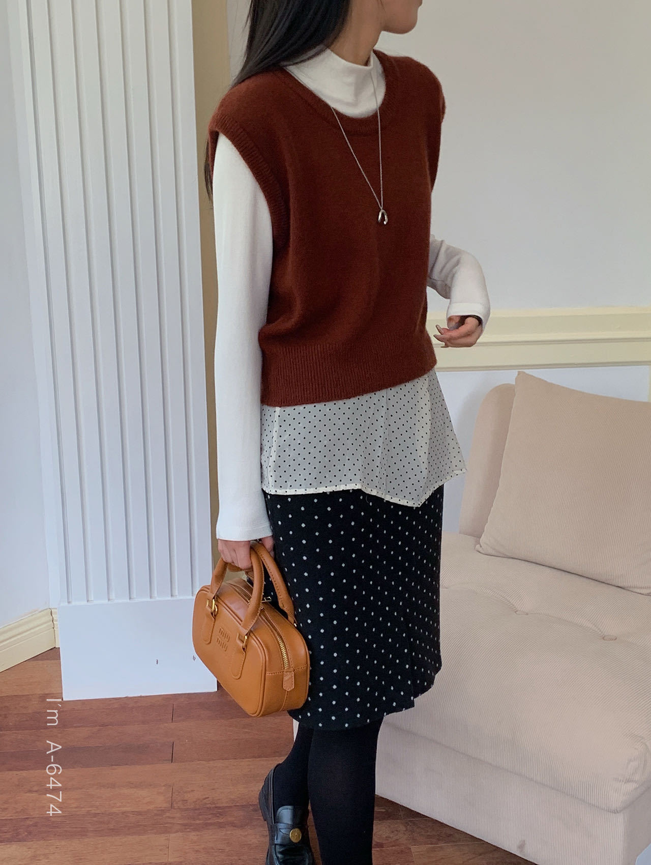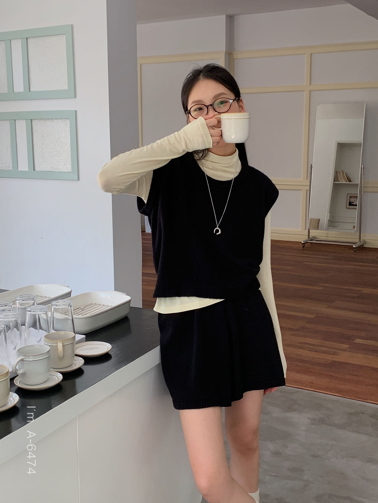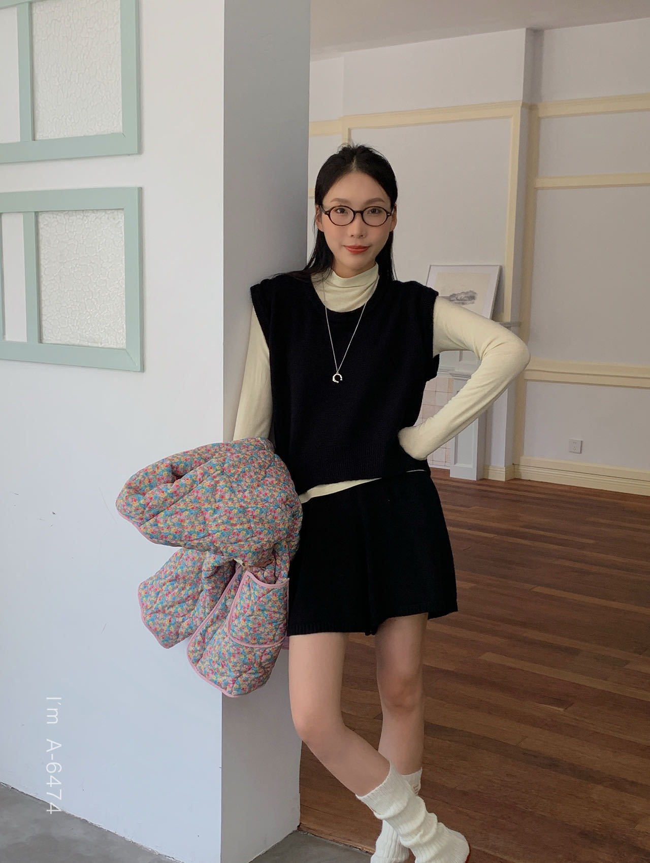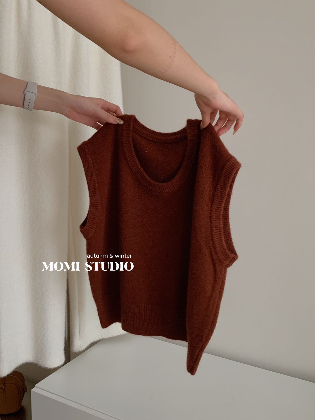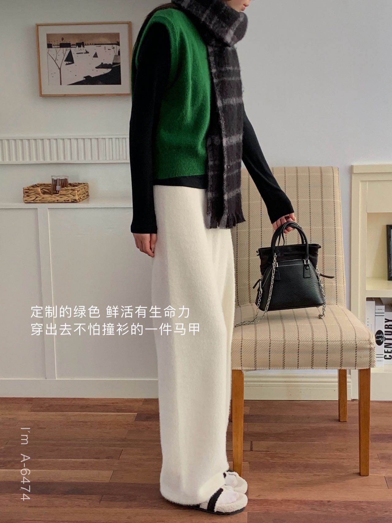 Du 작은 집 가을과 겨울 새로운 작은 따뜻한 뜨개질. 둥근 목을 가진 여자 한국 스타일 유행 조끼스토어 가기