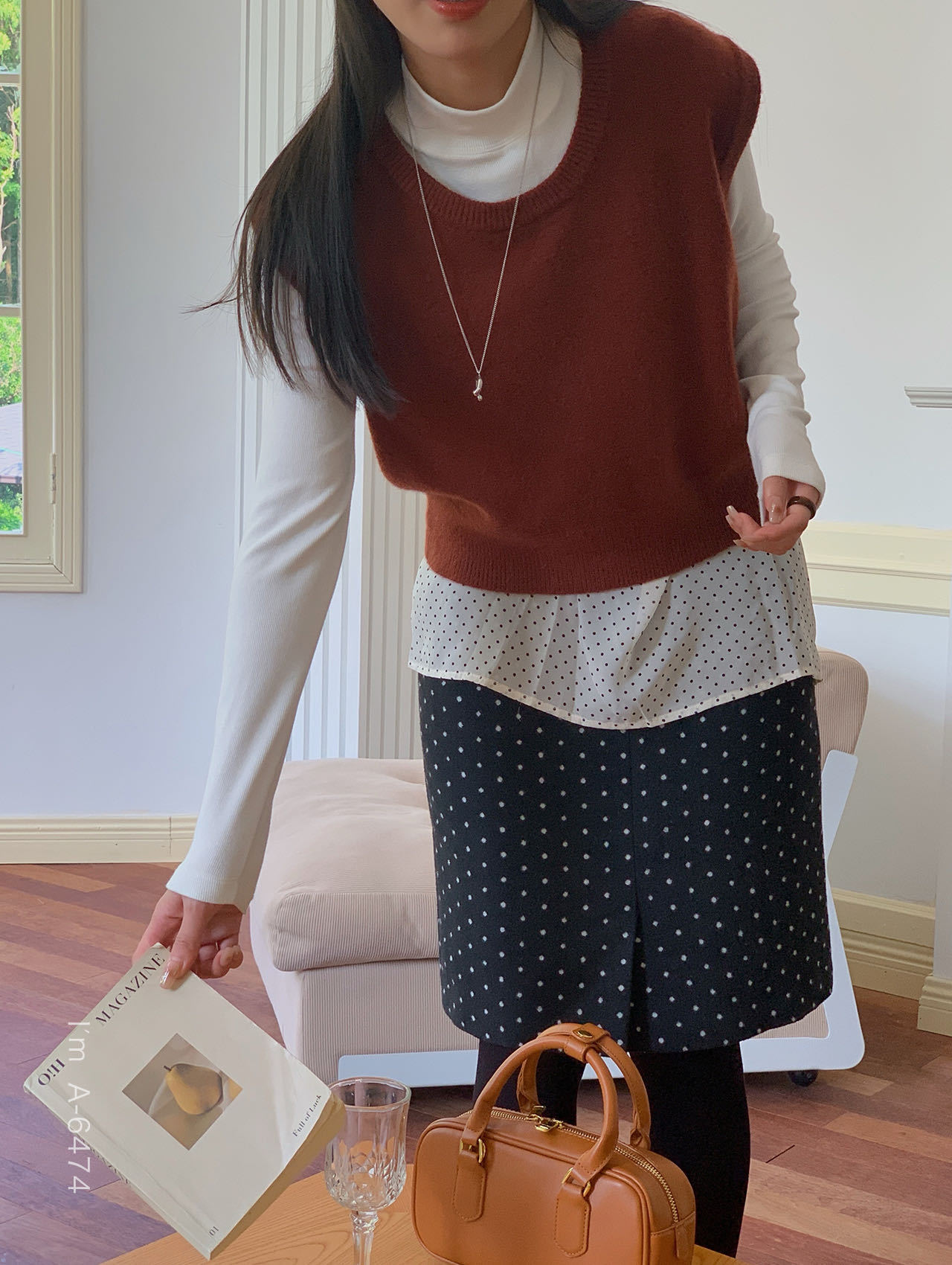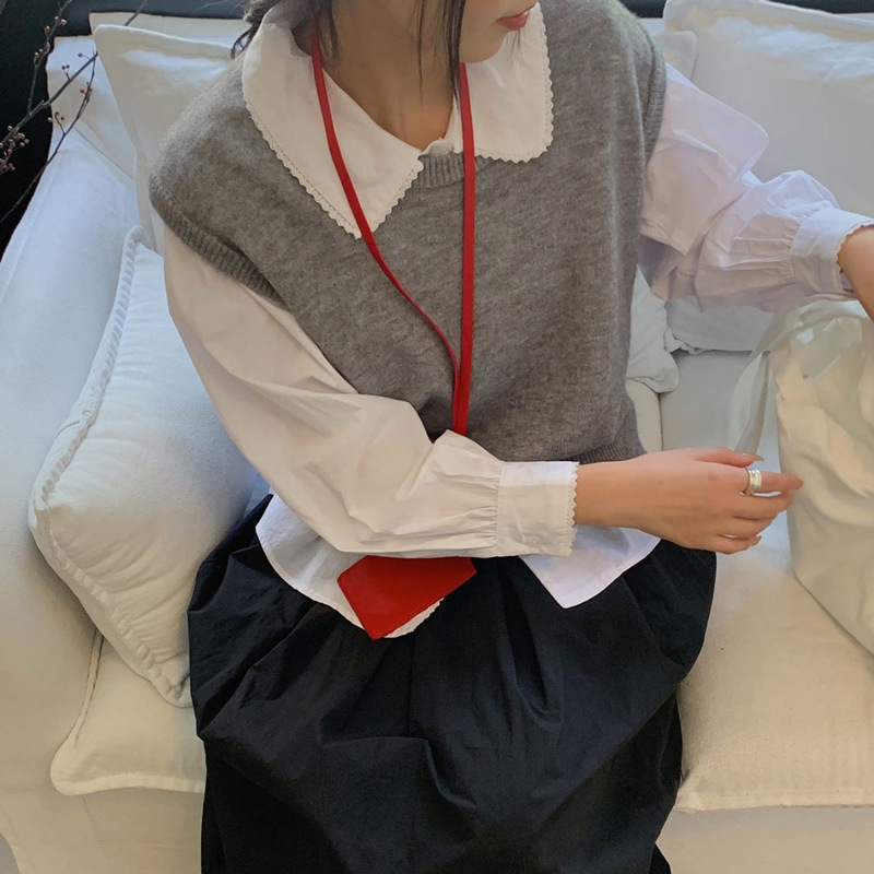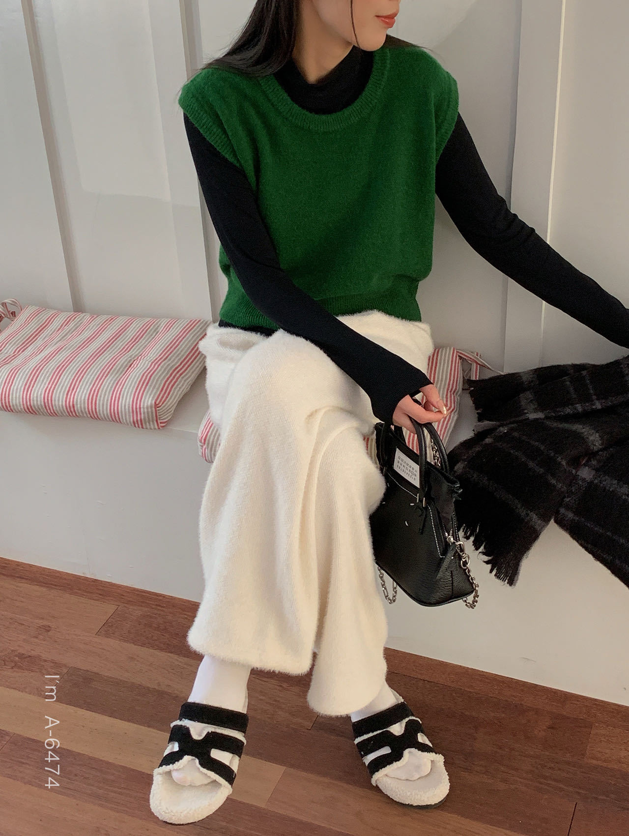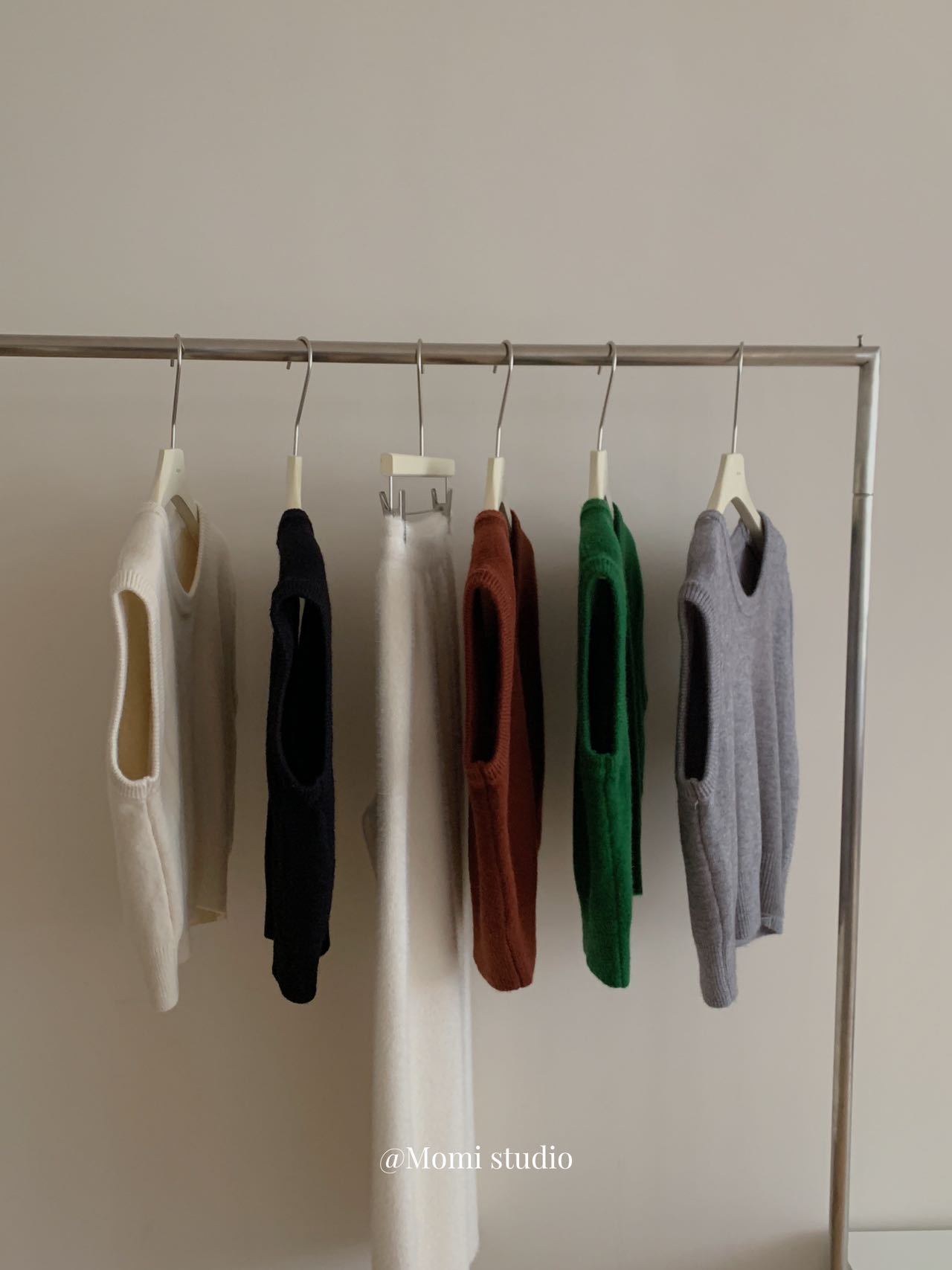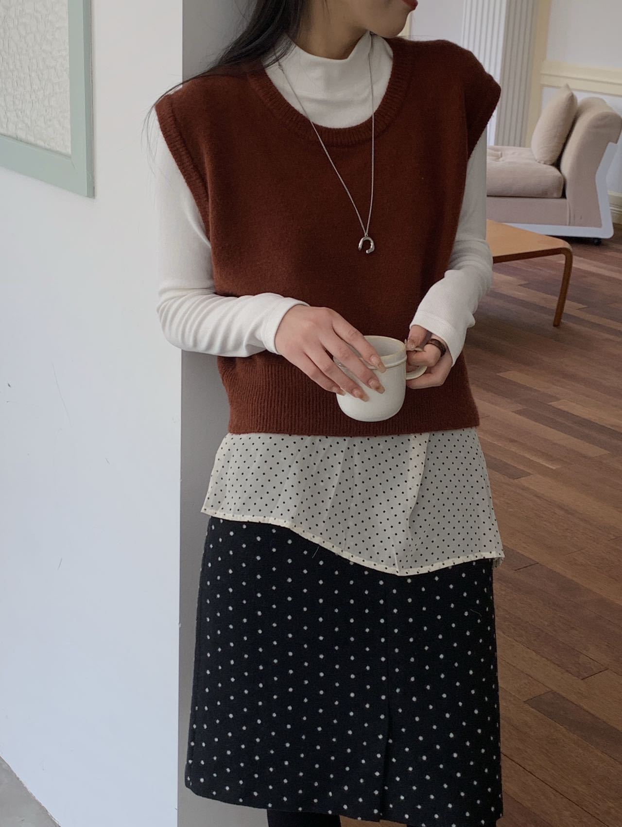 Du 작은 집 가을과 겨울 새로운 작은 따뜻한 뜨개질. 둥근 목을 가진 여자 한국 스타일 유행 조끼스토어 가기