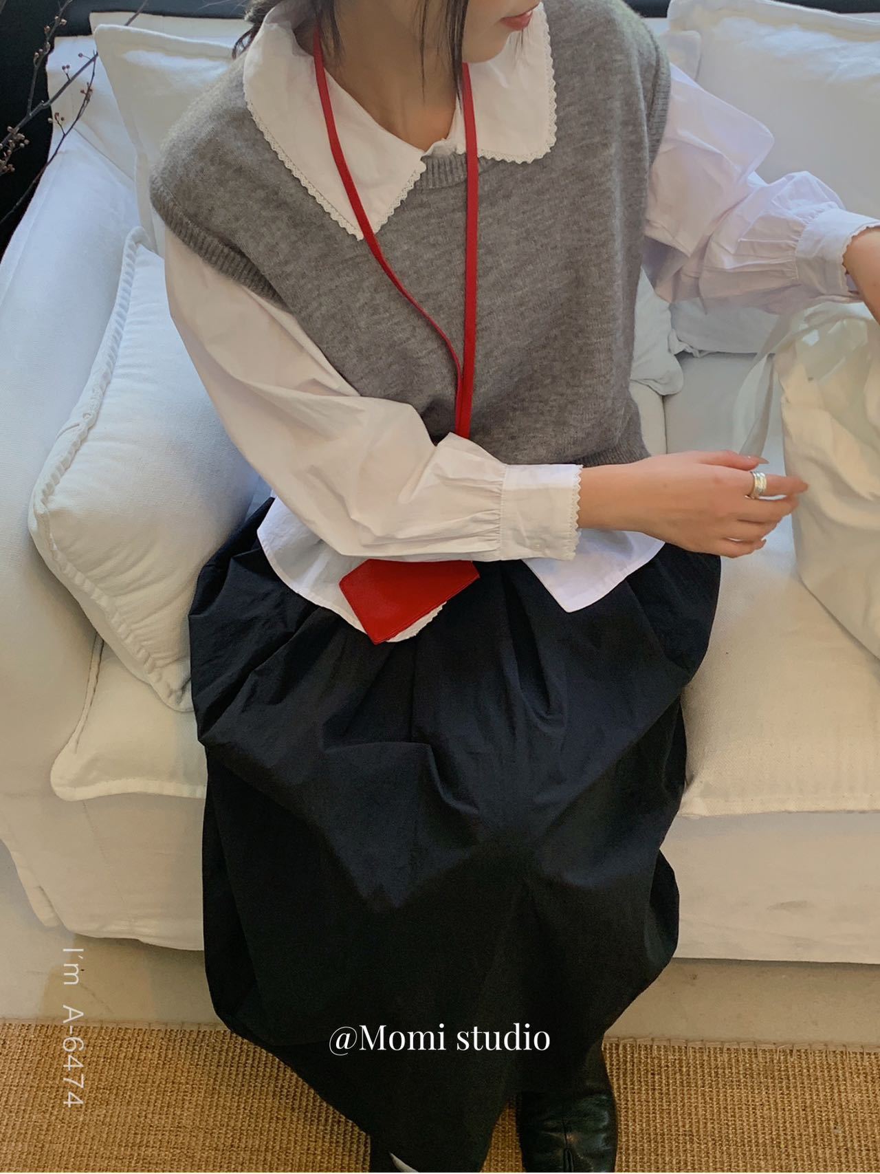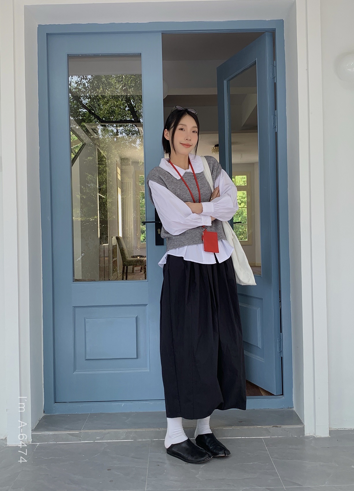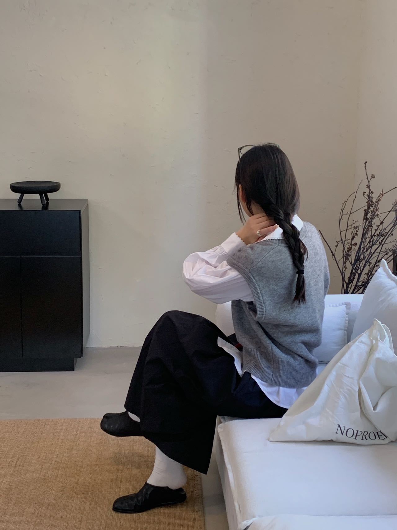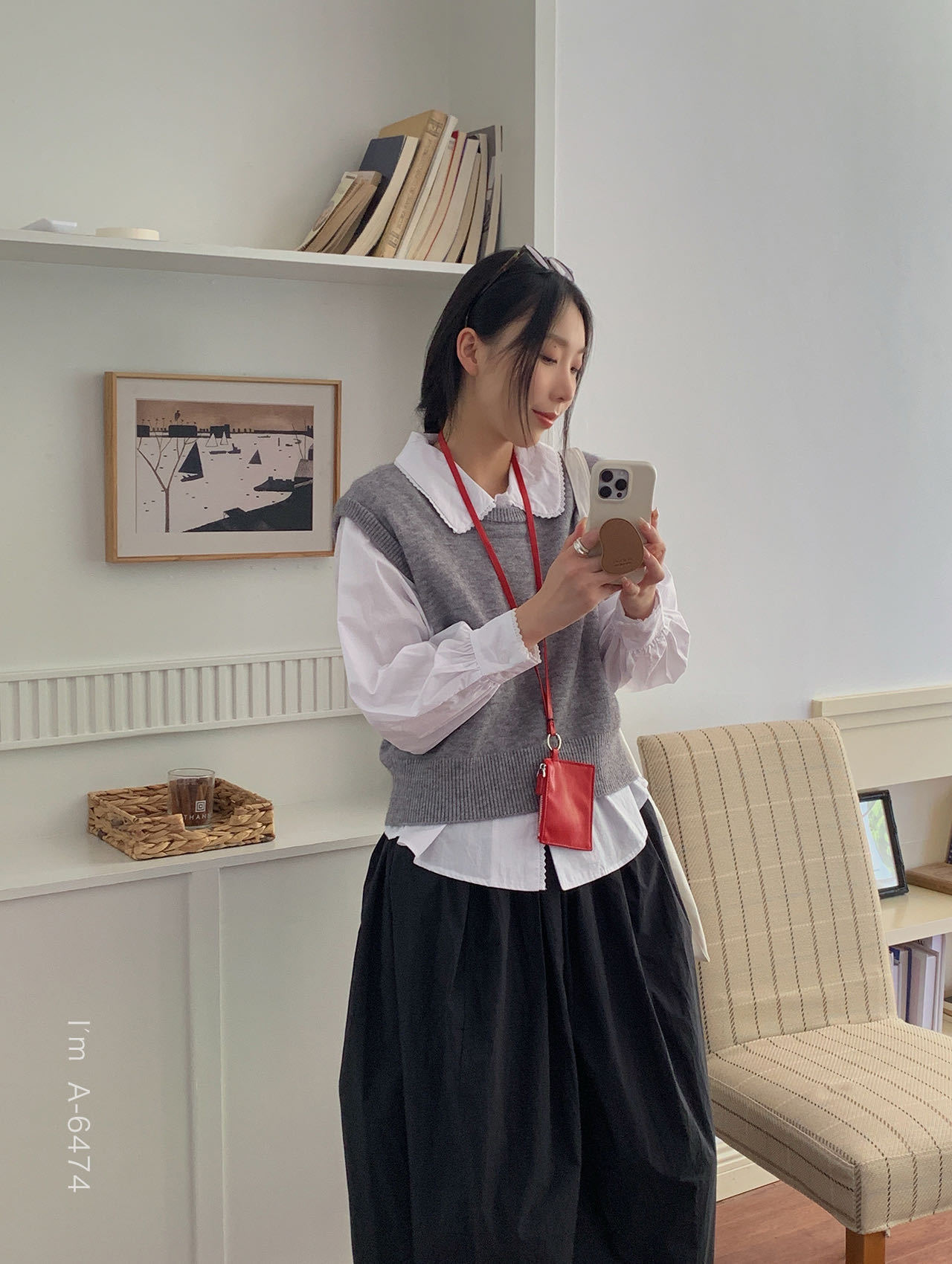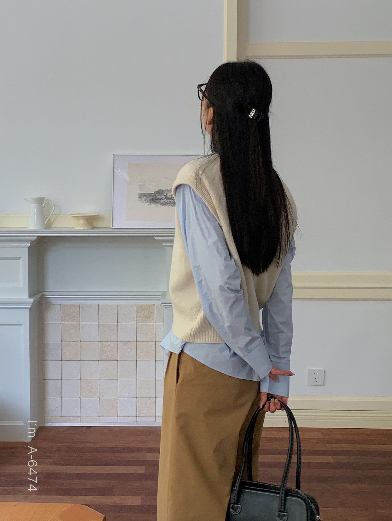 Du 작은 집 가을과 겨울 새로운 작은 따뜻한 뜨개질. 둥근 목을 가진 여자 한국 스타일 유행 조끼스토어 가기