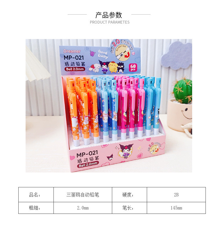 산리오 자동 연필 2.0mm 두꺼운 리필 푸시 풀 연필 쓰기 연속 활동 쓰기 펜스토어 가기
