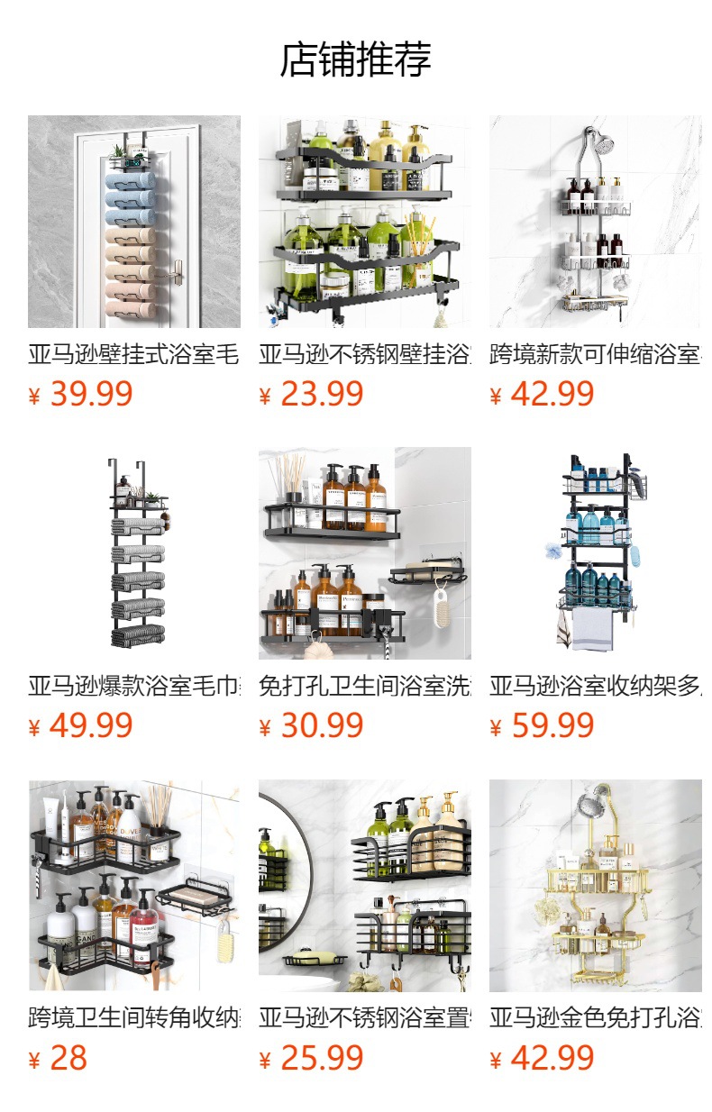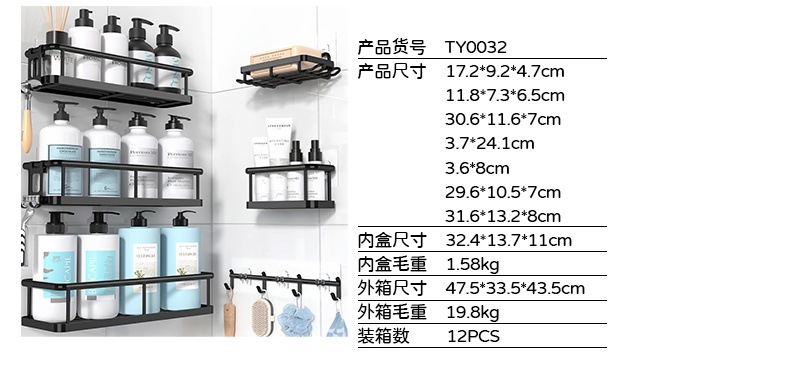 크로스보더 무타공 욕실 수납 선반 6종 세트 철제 벽걸이 욕실 벽 수납 선반 세트스토어 가기