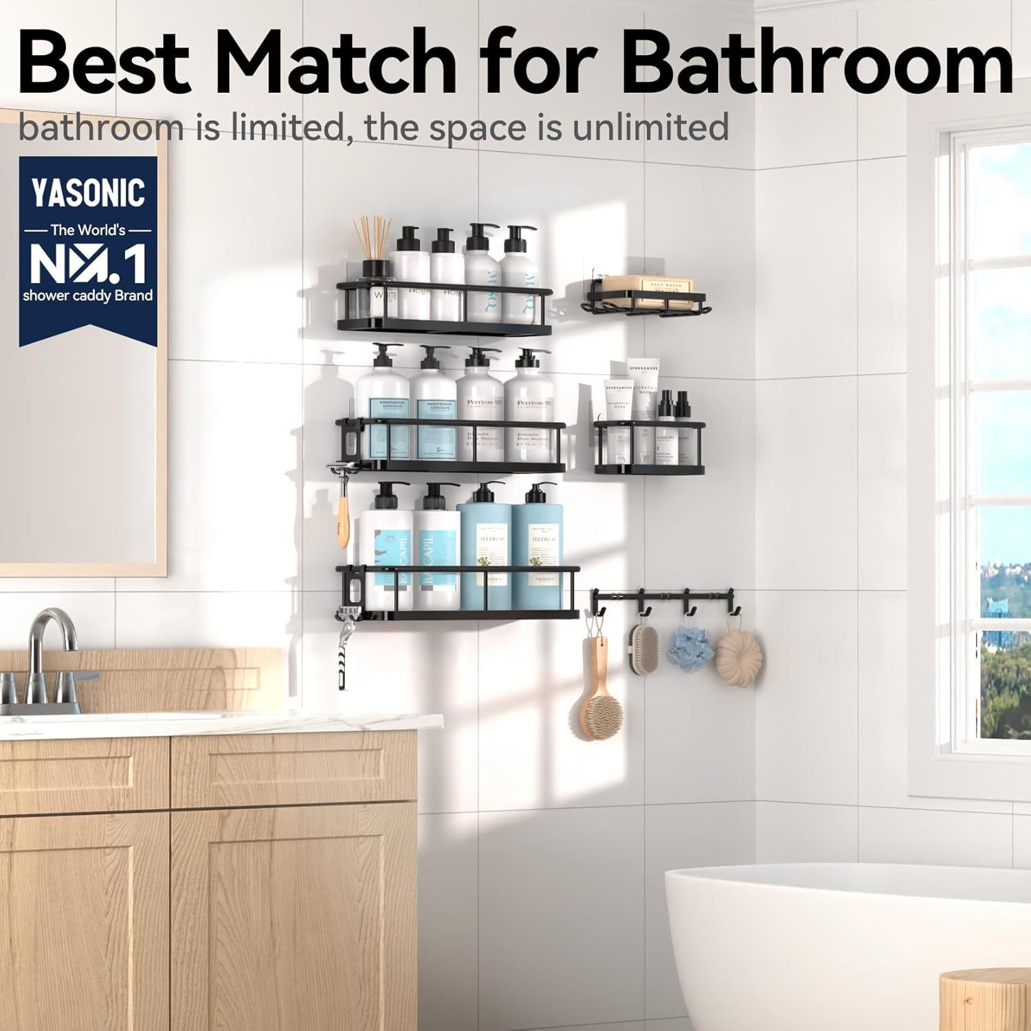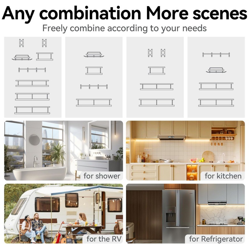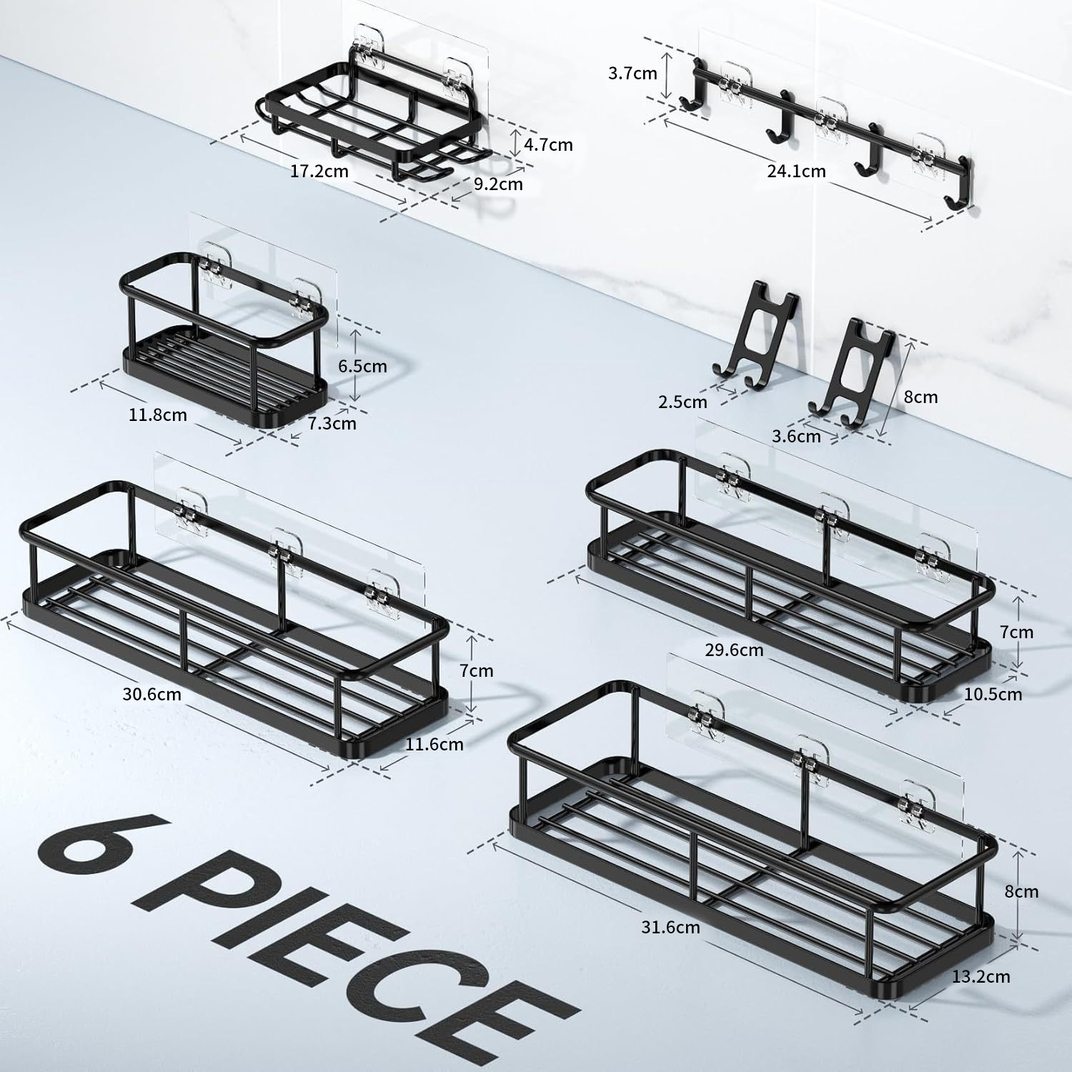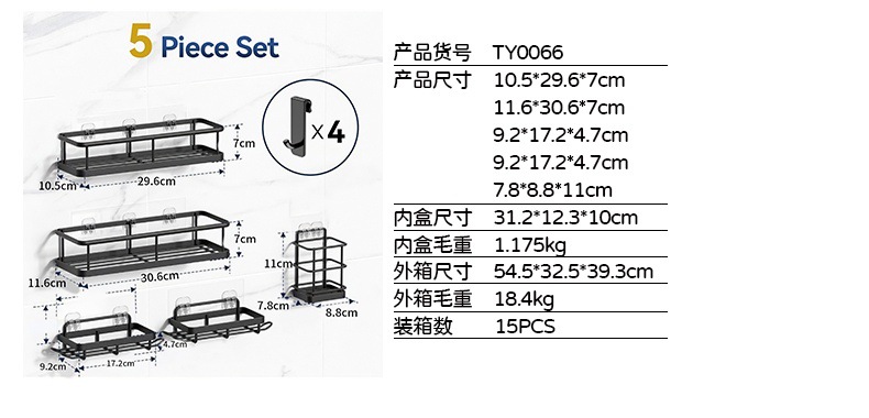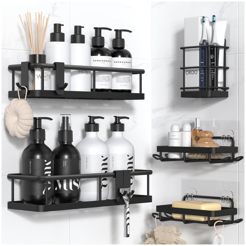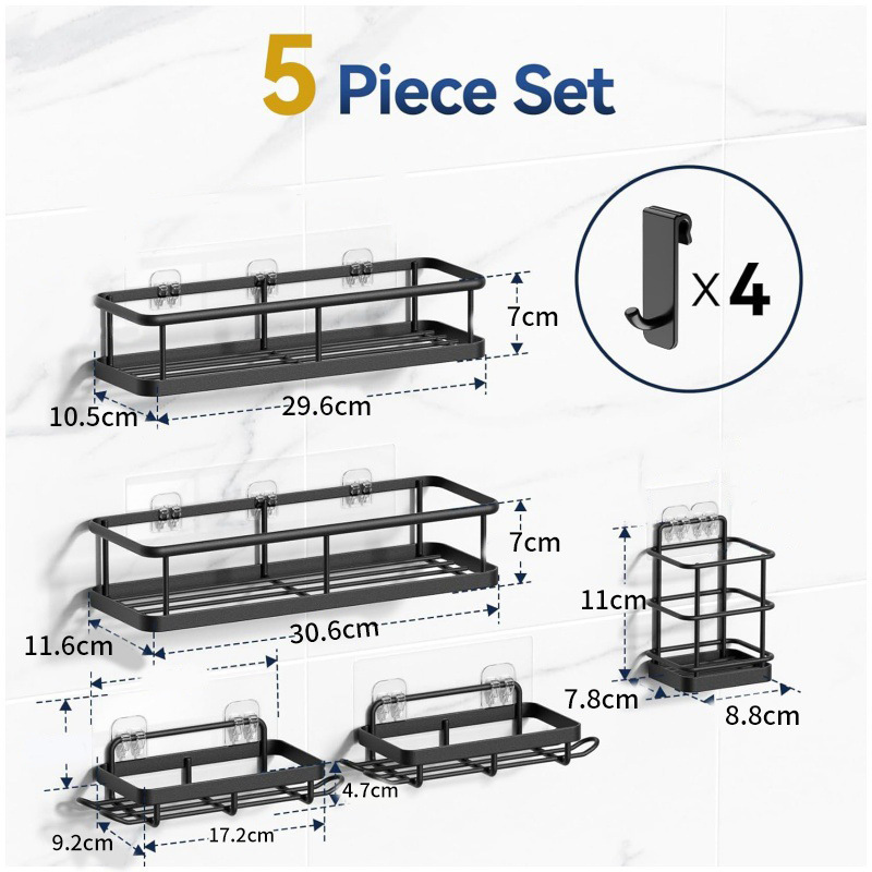 크로스보더 무타공 욕실 수납 선반 6종 세트 철제 벽걸이 욕실 벽 수납 선반 세트