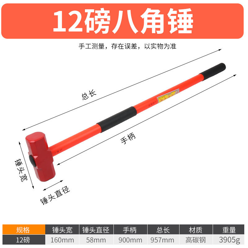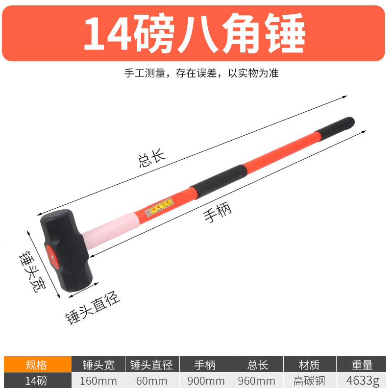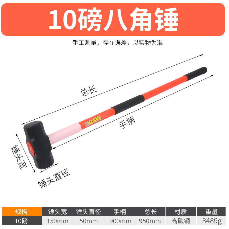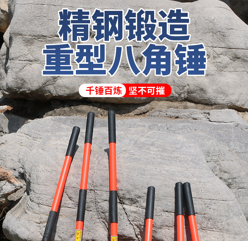 핸들 벽 해머 도구 충격 흡수 팔각형 해머 단단한 결합 된 벽 해머가있는 국경 긴 손잡이 팔각형 해머스토어 가기