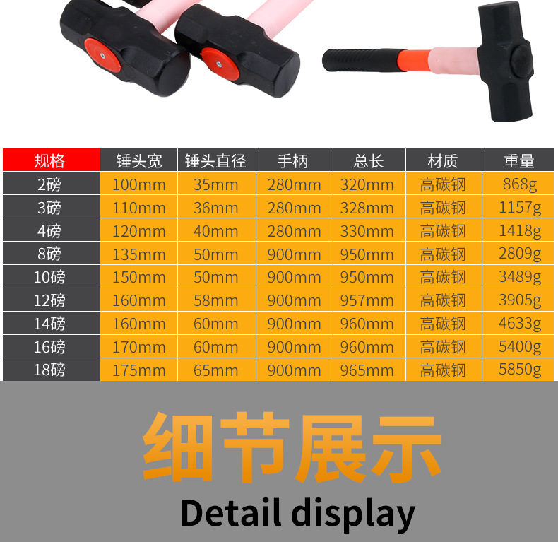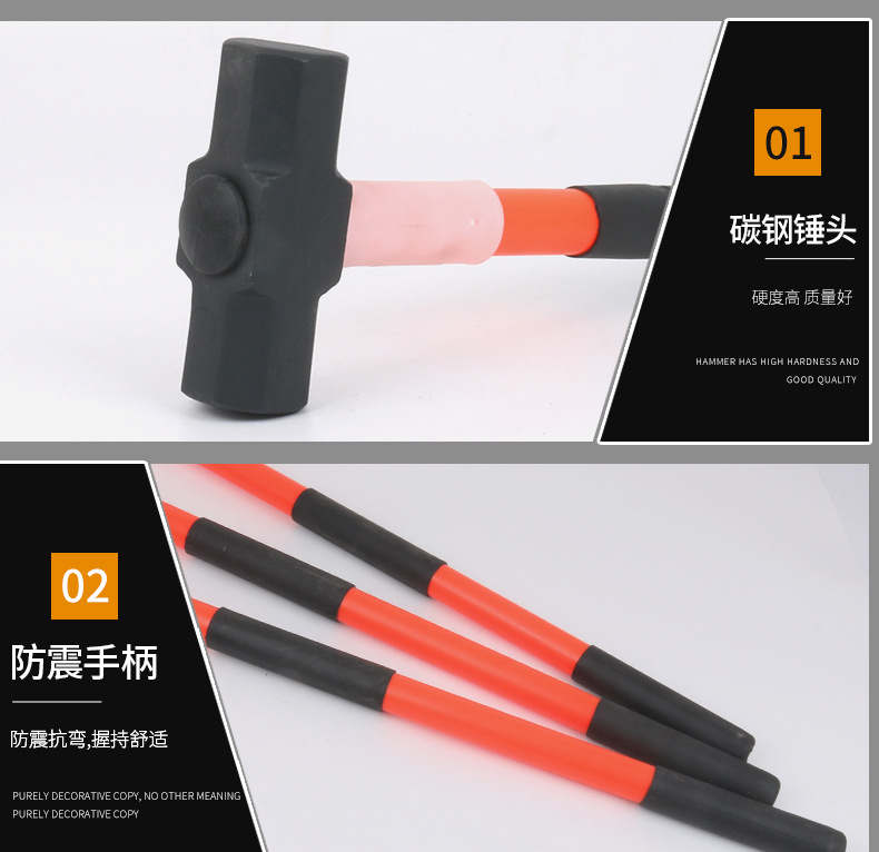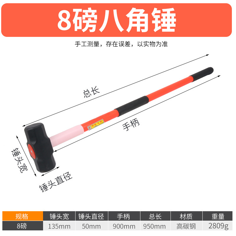 핸들 벽 해머 도구 충격 흡수 팔각형 해머 단단한 결합 된 벽 해머가있는 국경 긴 손잡이 팔각형 해머
