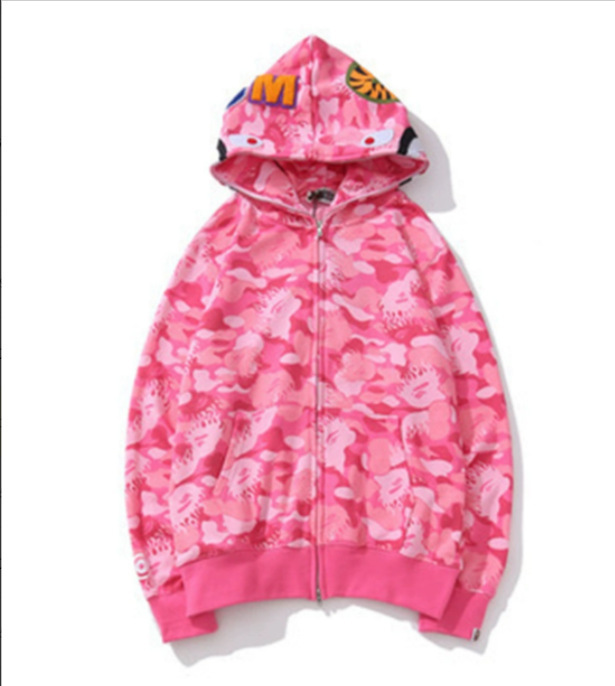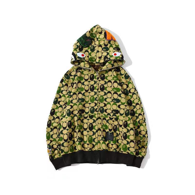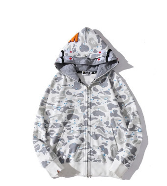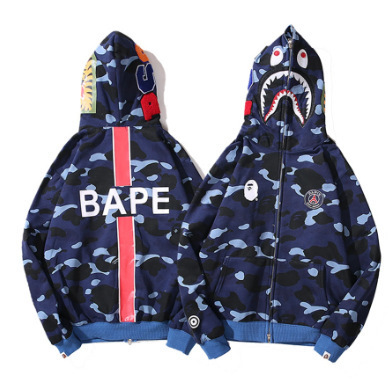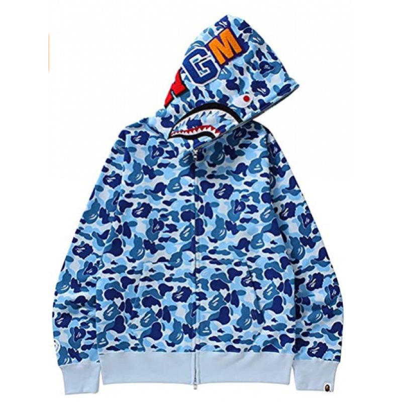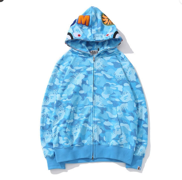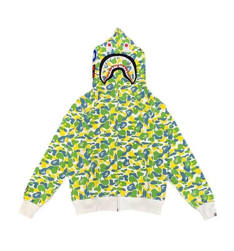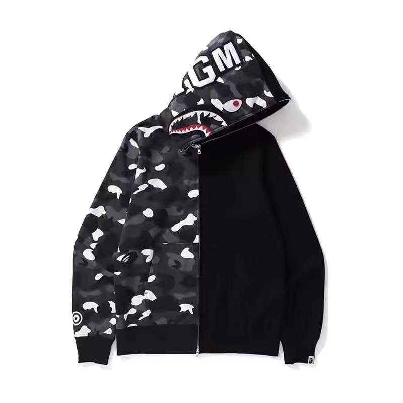 2024 크로스 보더 새로운 BAPE WGM 상어 머리 3D 디지털 인쇄 스웨터 지퍼 캐주얼 스포츠 후드스토어 가기