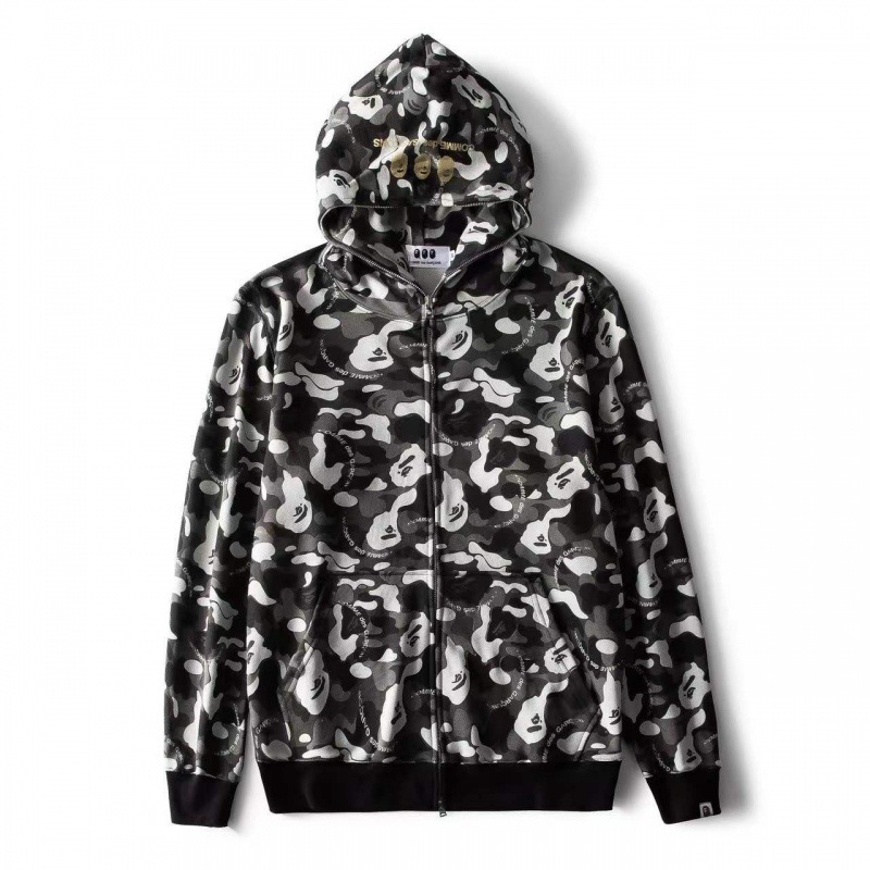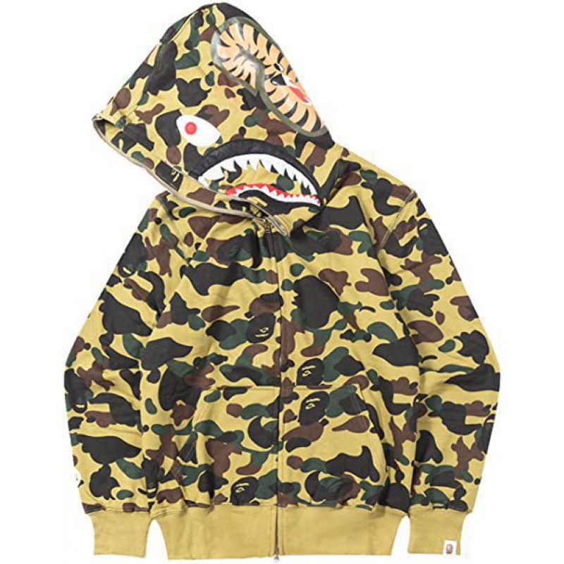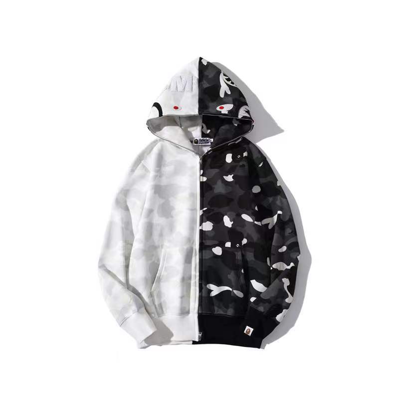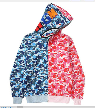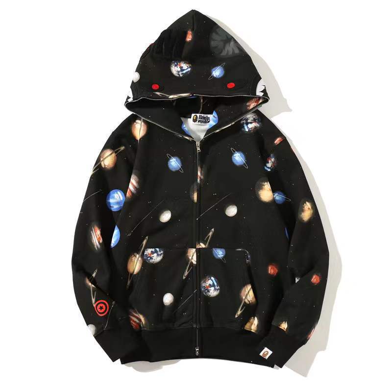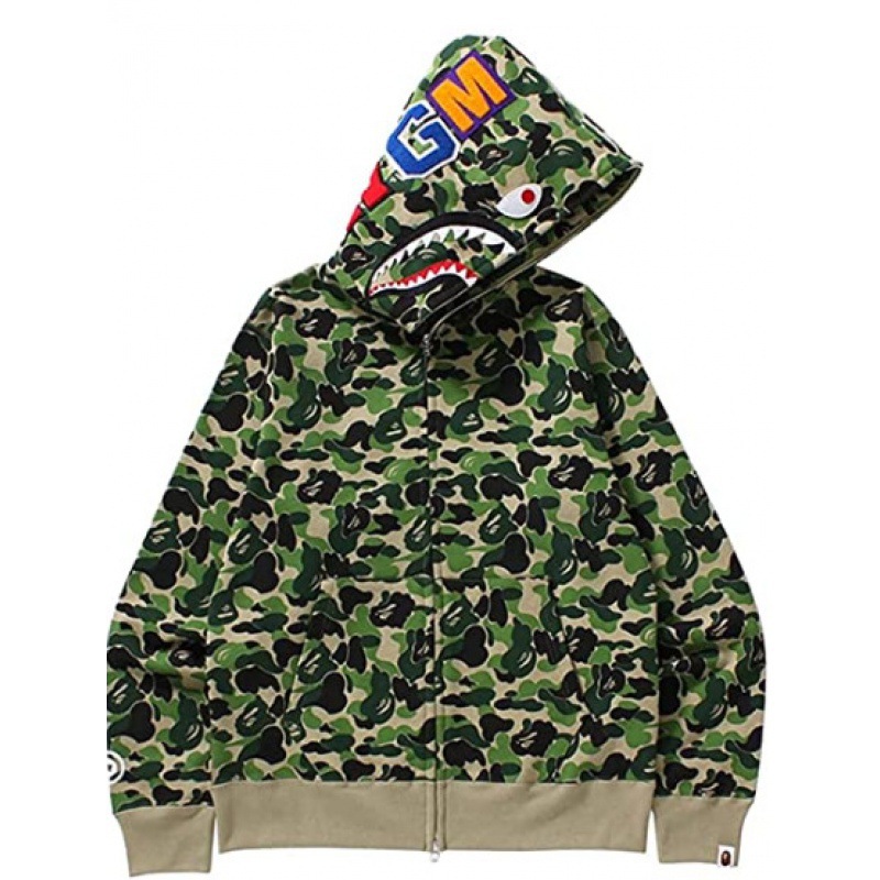 2024 크로스 보더 새로운 BAPE WGM 상어 머리 3D 디지털 인쇄 스웨터 지퍼 캐주얼 스포츠 후드스토어 가기