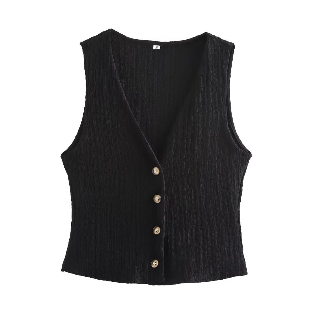 대외 무역 목록! 여성 도매 여성 질감 단일 가슴 조끼 조끼 높은 허리 스트레이트 바지 캐주얼 세트