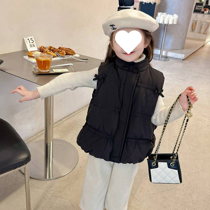 여자 조끼 면화 2024 새로운 가을과 겨울 착용 어린이 조끼 코트 아기 소녀 겨울 두꺼운 조끼 외부 착용