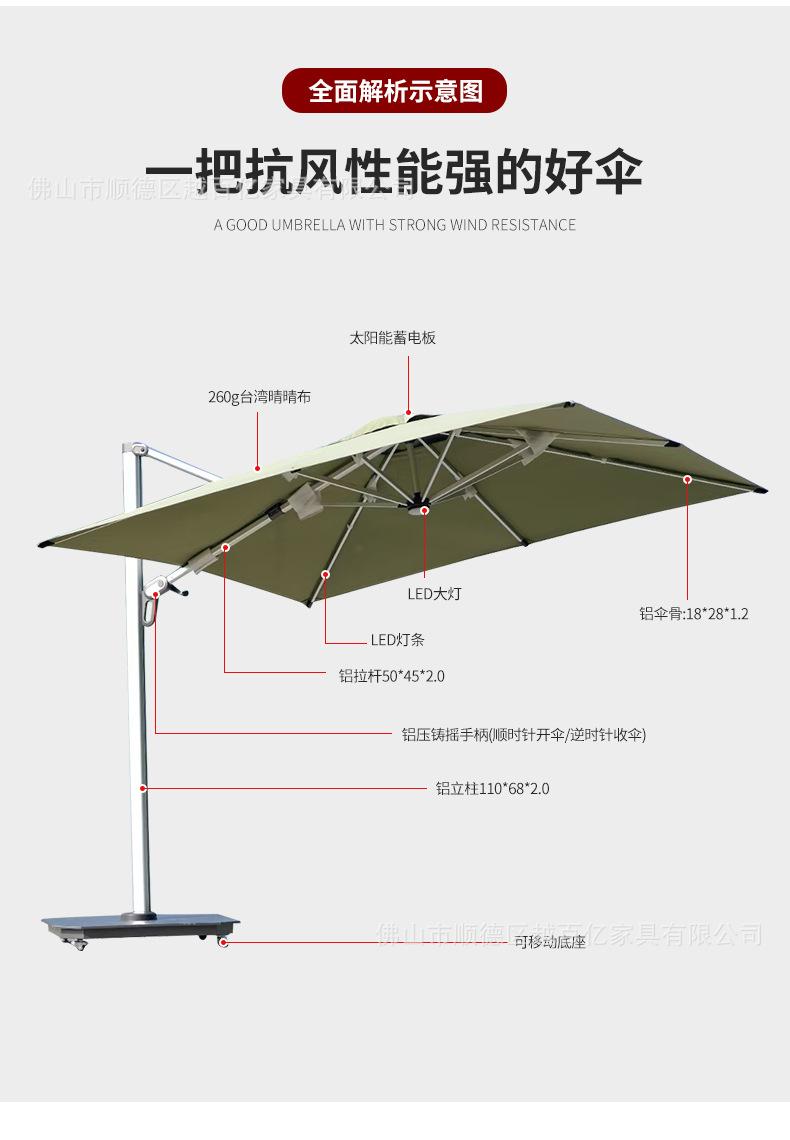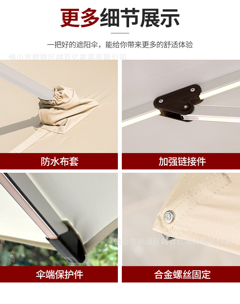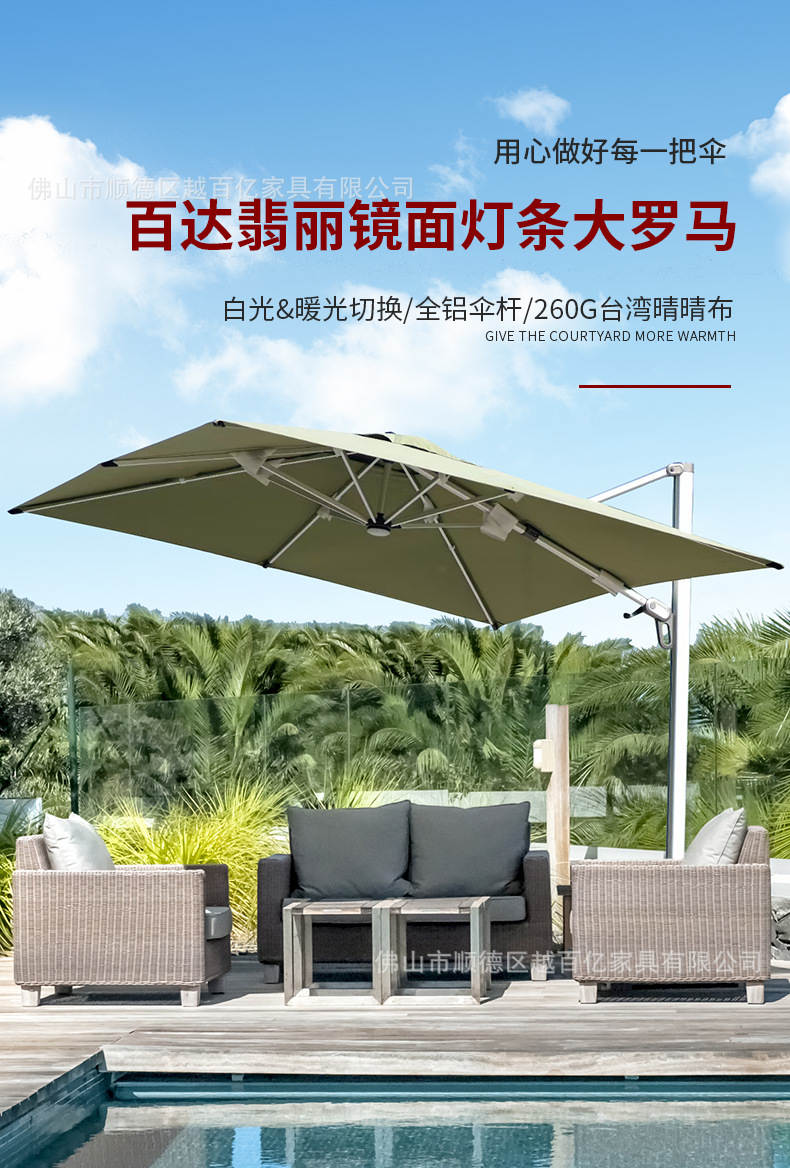 국경 간 고급 야외 파라솔 3*3 대형 야외 우산 따뜻한 화이트 워터 탱크 태양 우산 광장 로마 우산스토어 가기