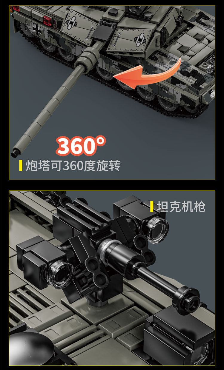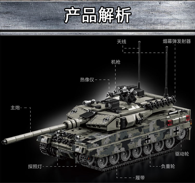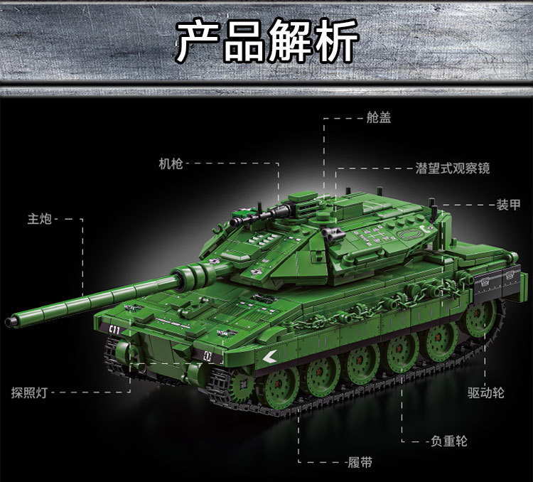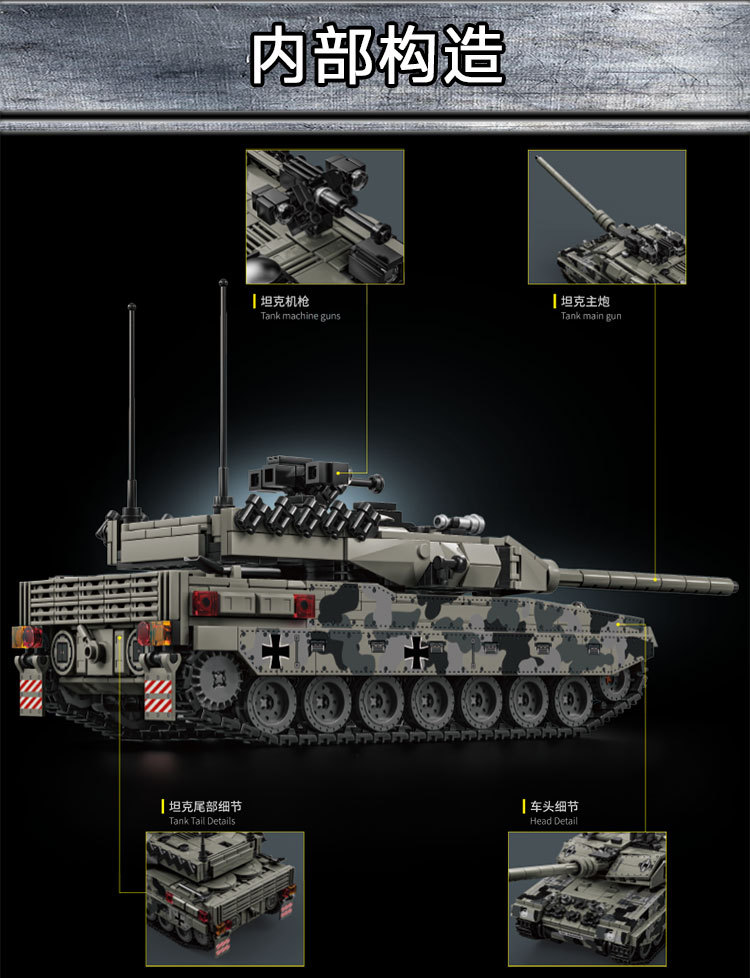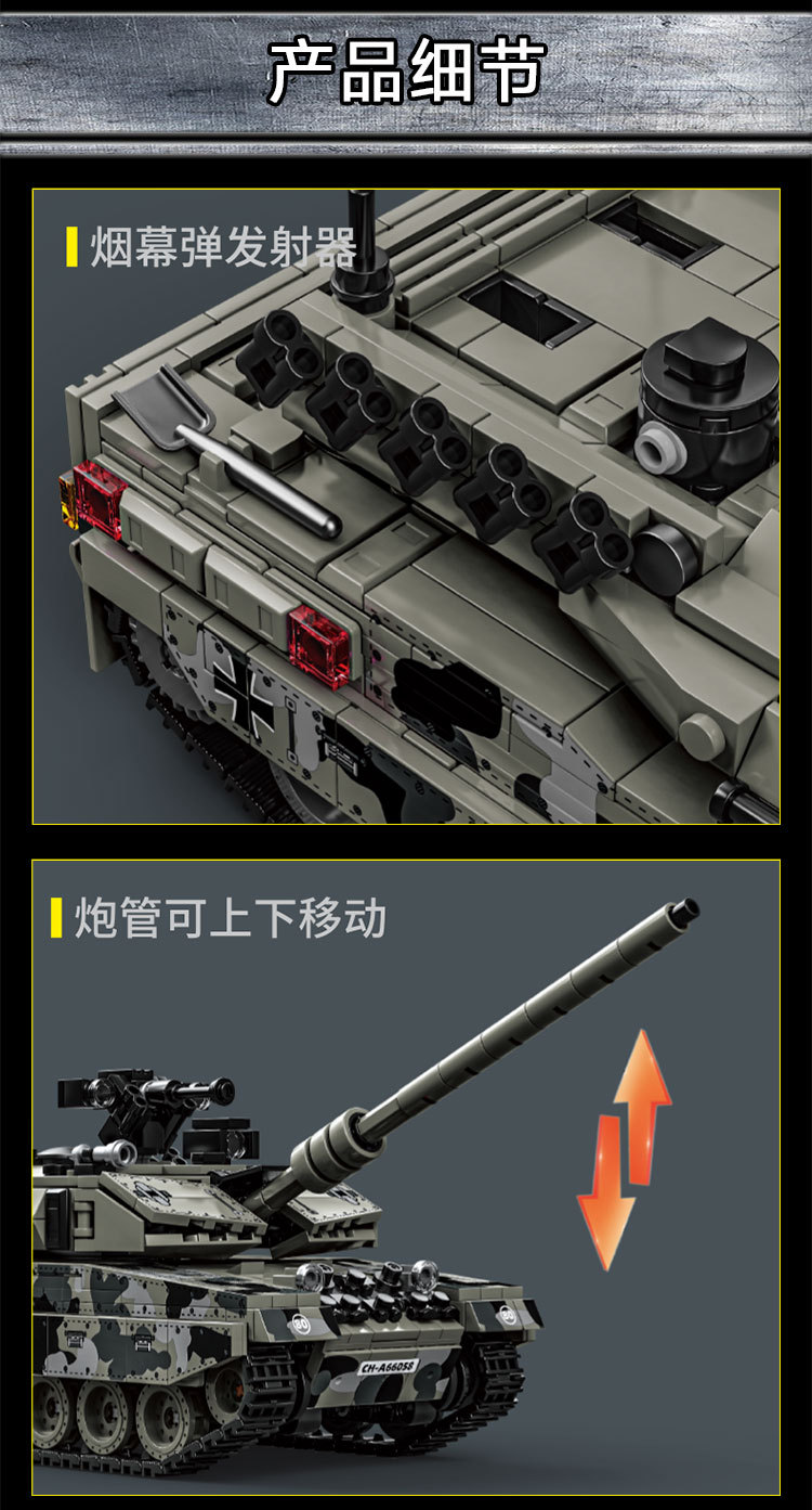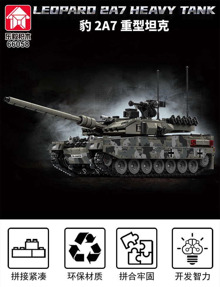 Le Yi 66050-72 Leopard 2A7 메인 전투 탱크 모델 높은 어려움 군사 조립 건물 블록 소년 국경 장난감스토어 가기