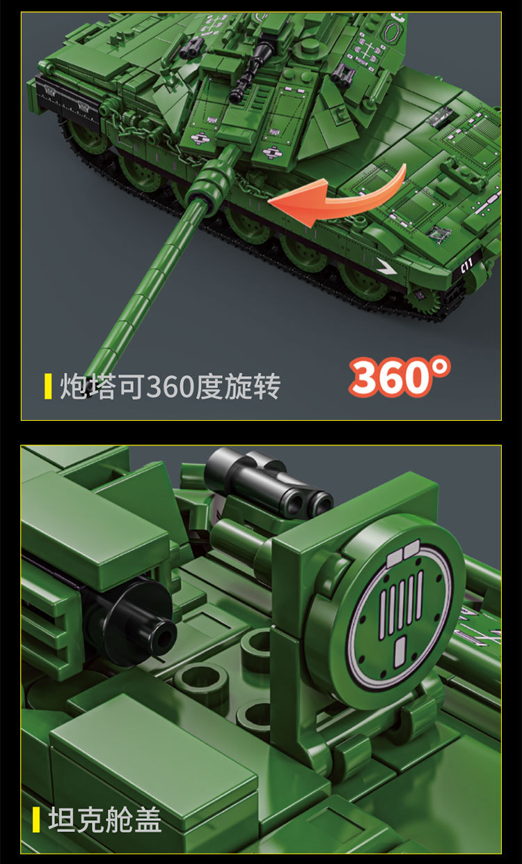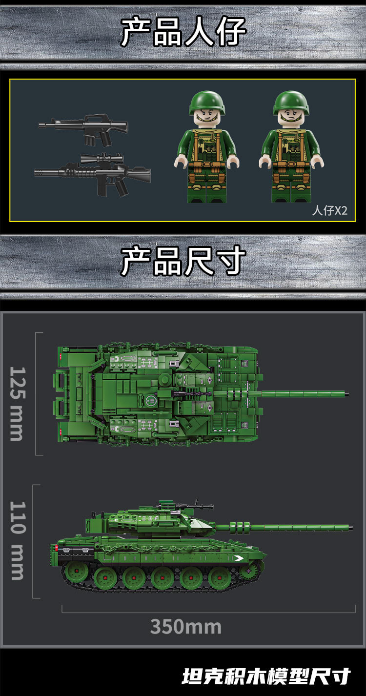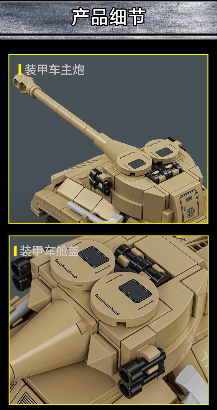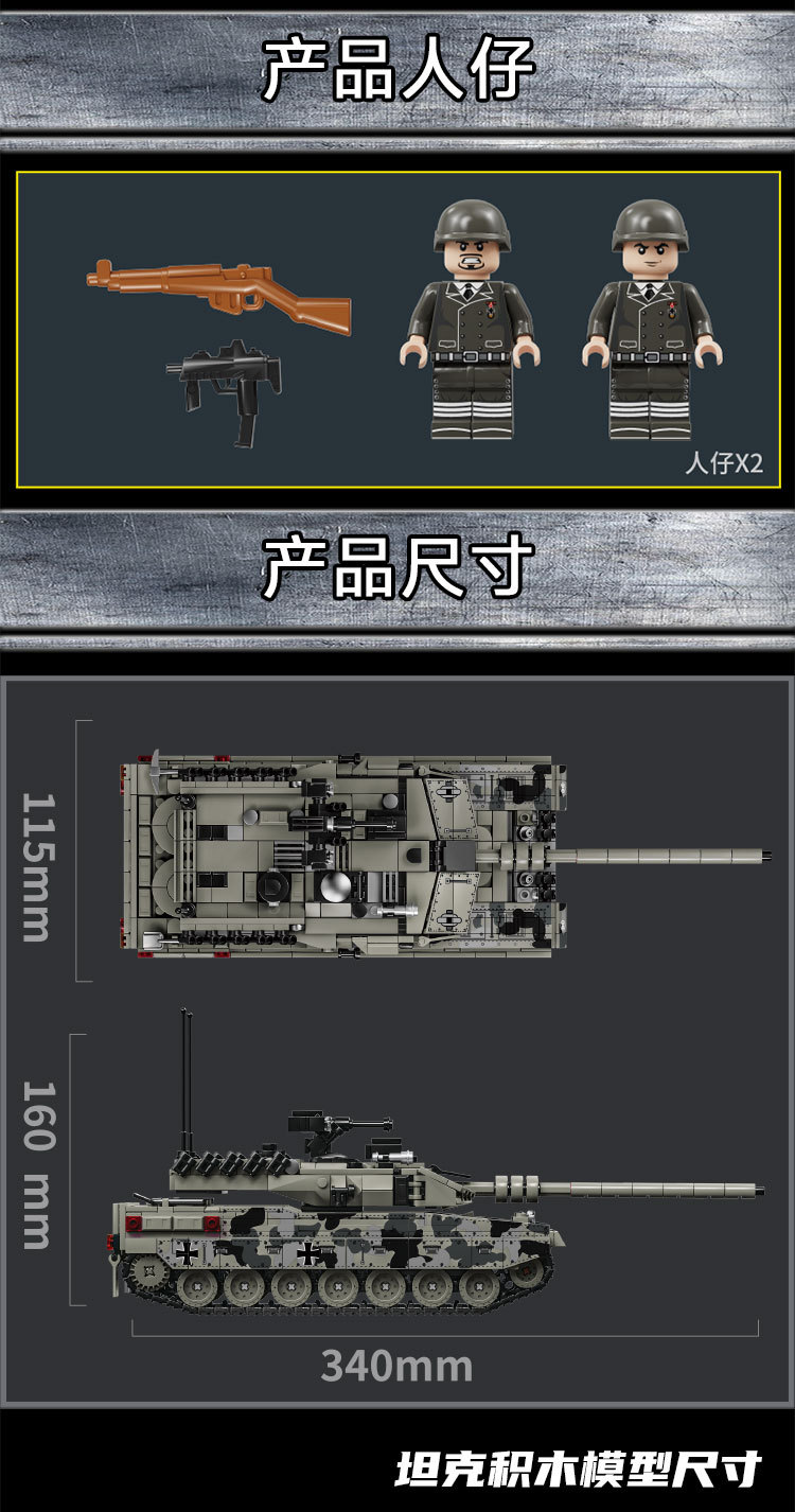 Le Yi 66050-72 Leopard 2A7 메인 전투 탱크 모델 높은 어려움 군사 조립 건물 블록 소년 국경 장난감스토어 가기