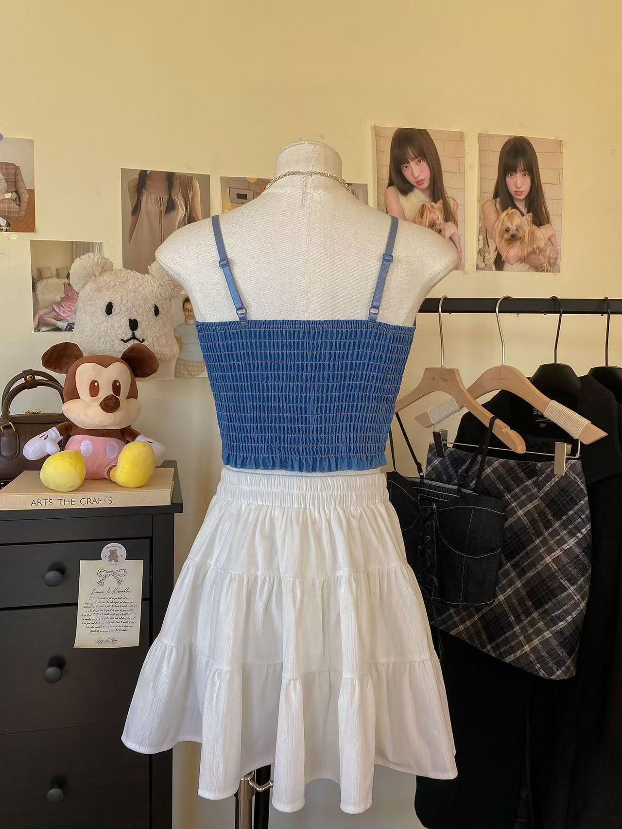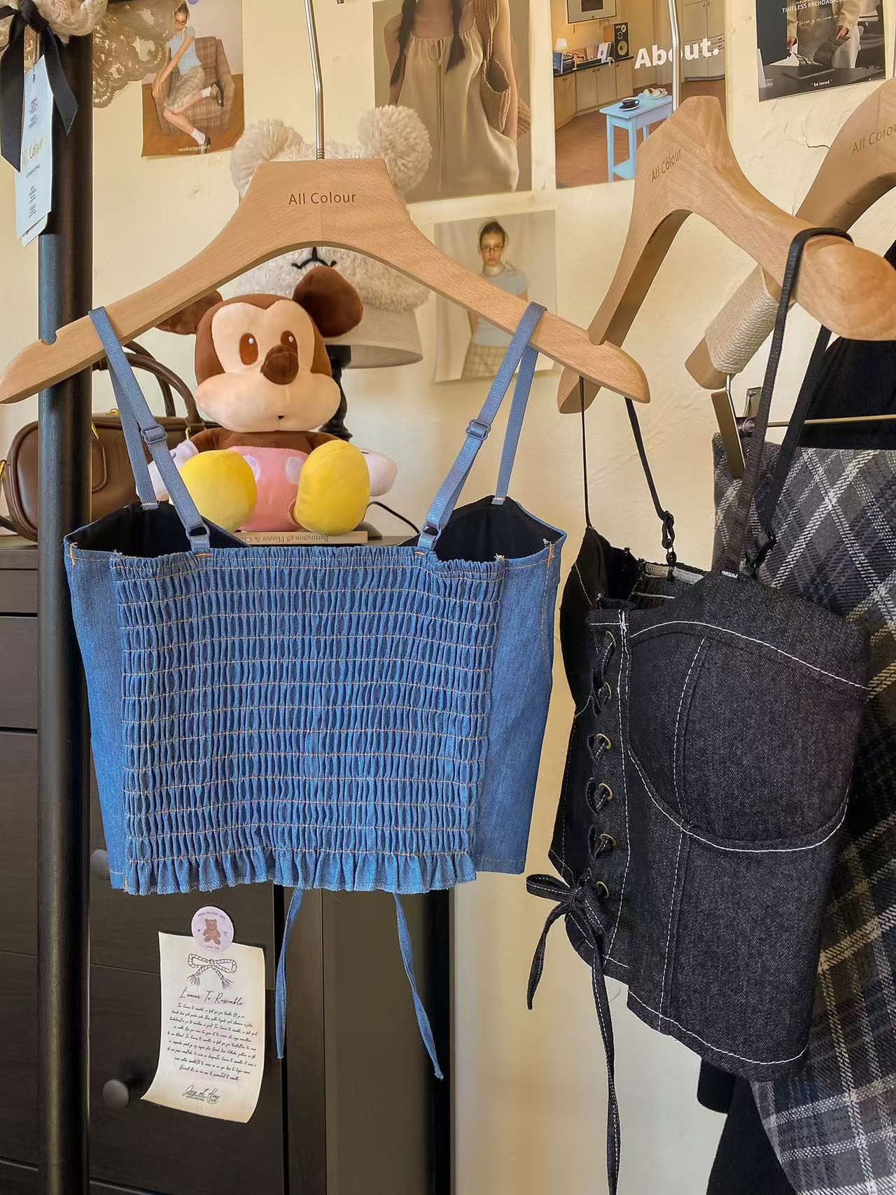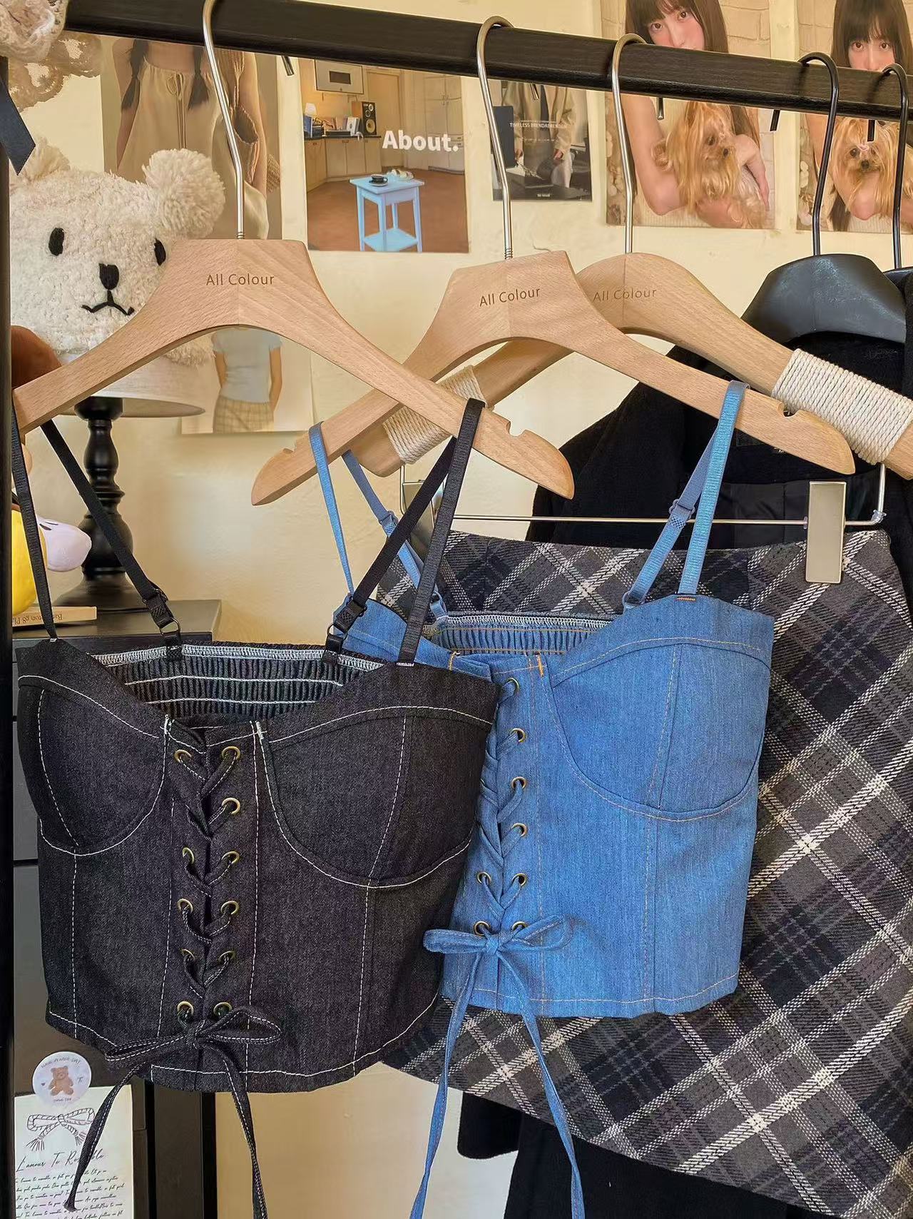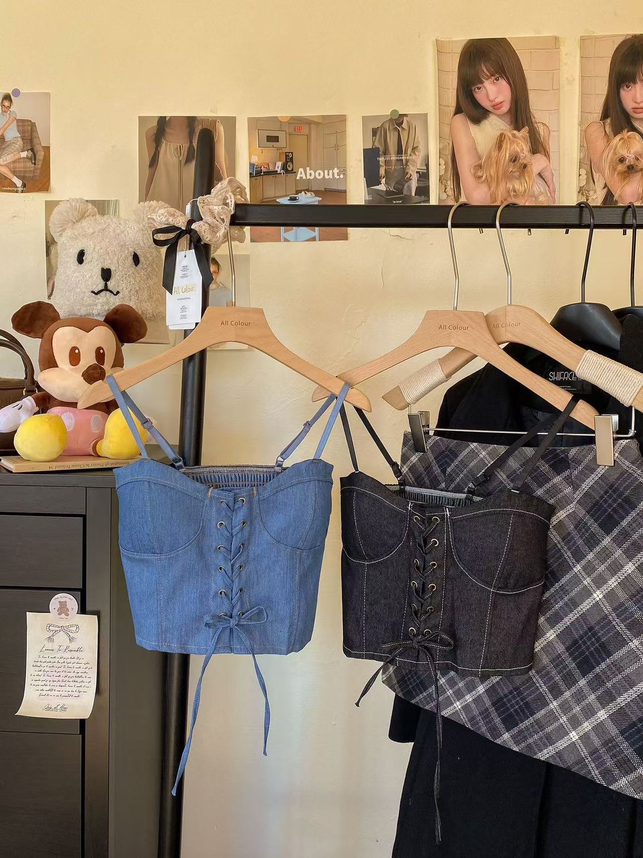 새로운 Bow Tie Drawstring 짧은 데님 가슴 패드 작은 Camisole Vest 틈새 올매치 랩 가슴 아름다운 뒤스토어 가기