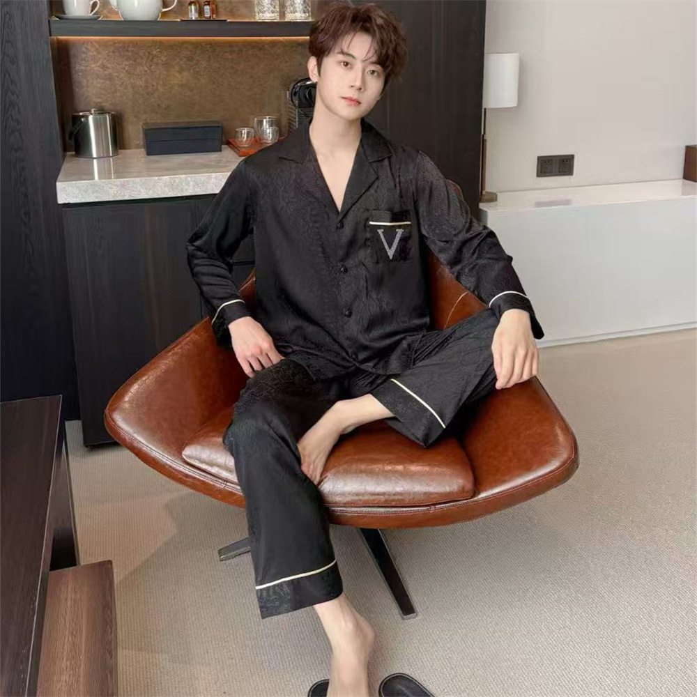 커플 잠옷 2026 봄/가을 남성용 신상 아이스 실크 긴팔 긴바지 세트 얇은 여성용 홈웨어 도매스토어 가기