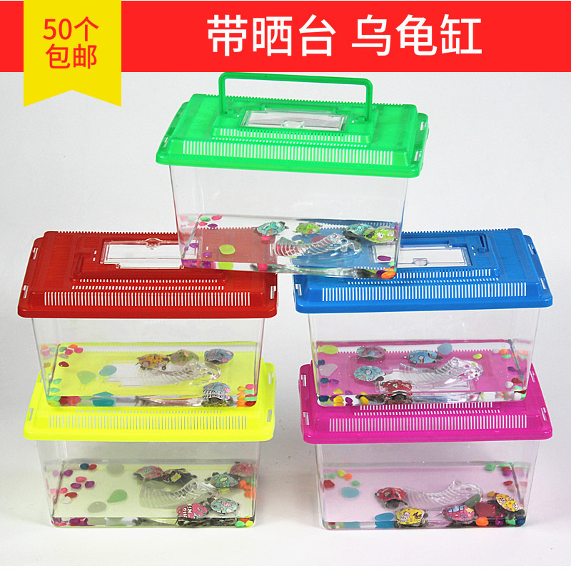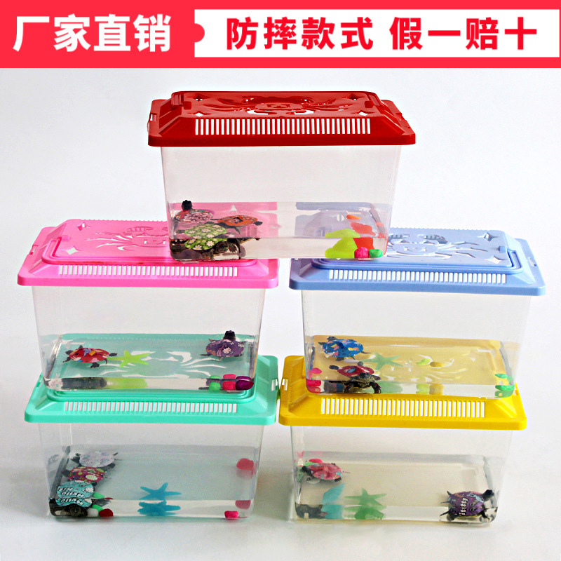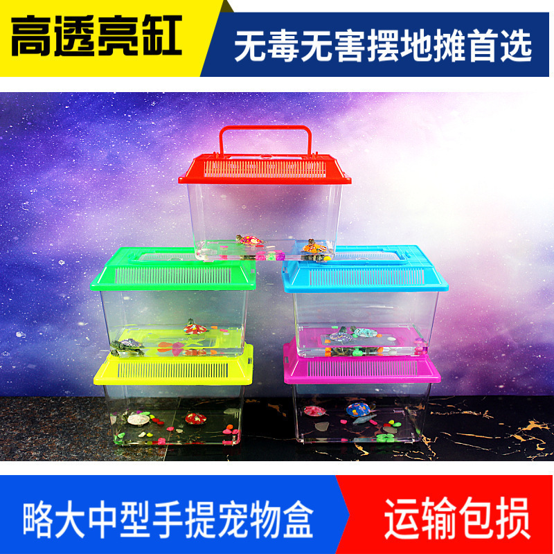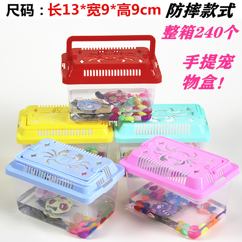 크고 중간 스몰 사이즈 플라스틱 금붕어 탱크 투명한 휴대용 애완 동물 먹이 상자 거북이 탱크 수송 상자 물고기 거북이 햄스터 케이지
