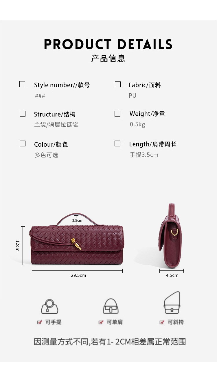 2026 봄/여름 신상 브레이드 백, 숄더/크로스바디, 우아한 바게트 백, 트렌디하고 패셔너블한 롱 클러치 이브닝 백