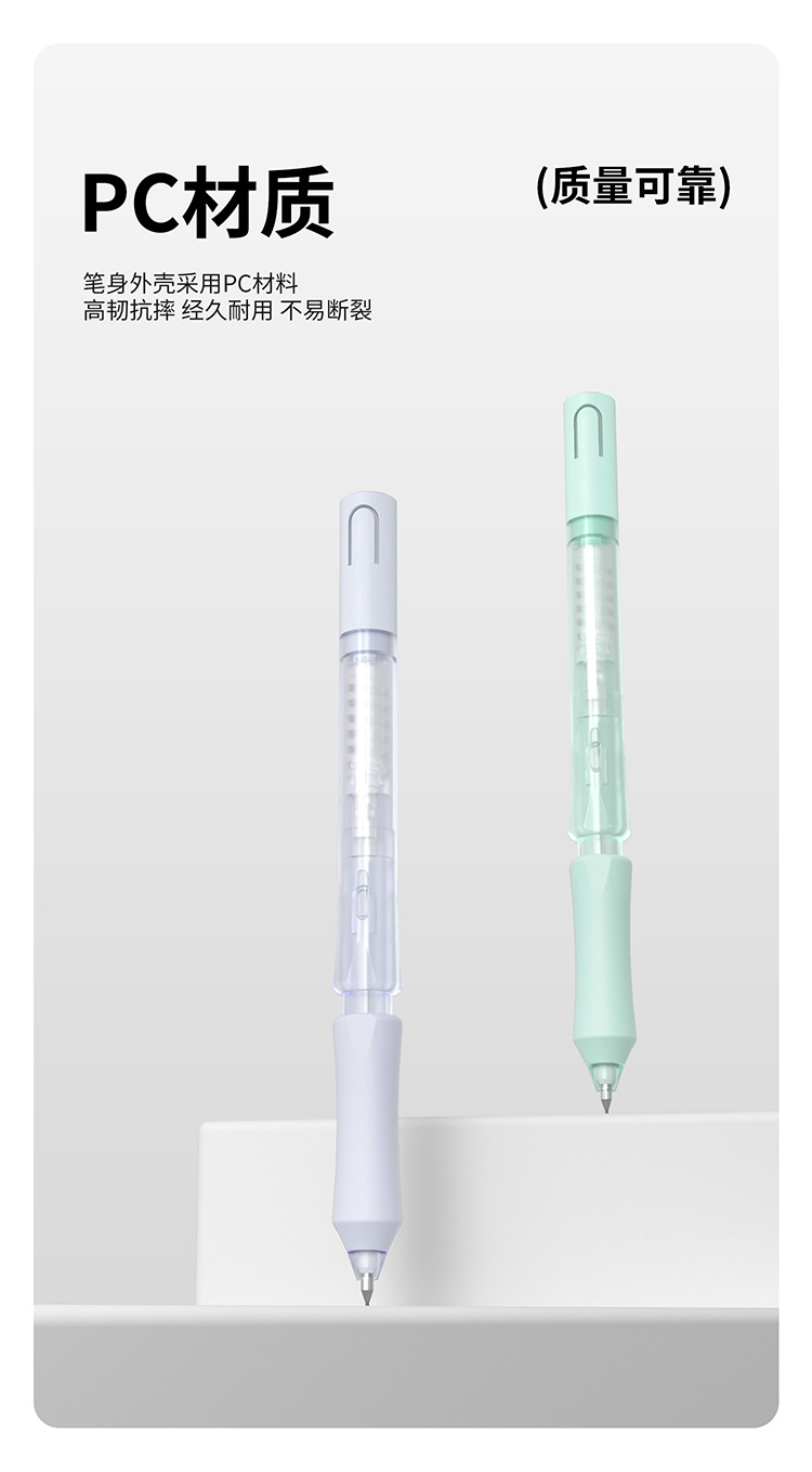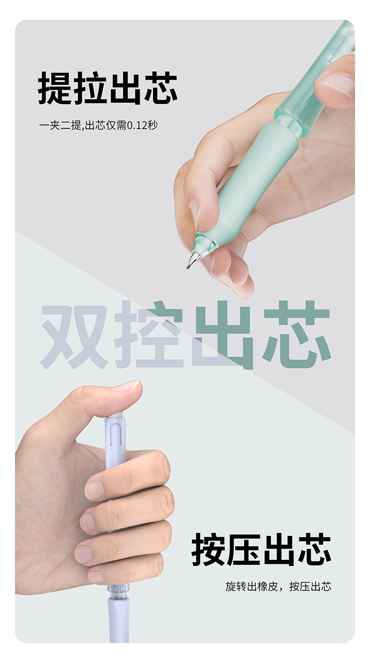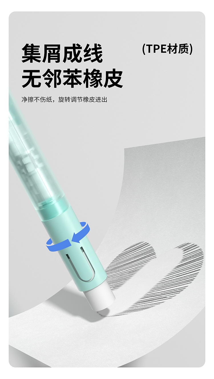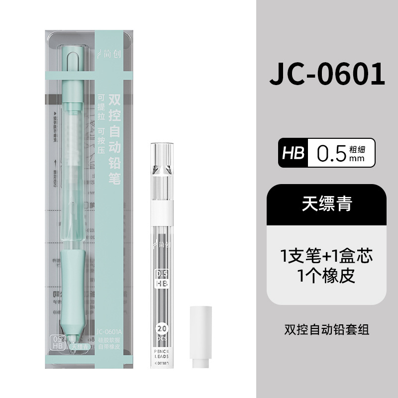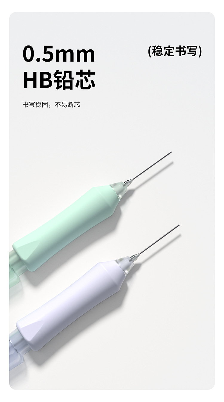 티라 펜슬 자동 누름식 이중 제어 저중심 지우개 세트 0.5HB 연속 필기 가능 누름식