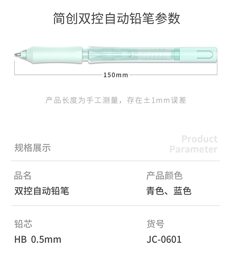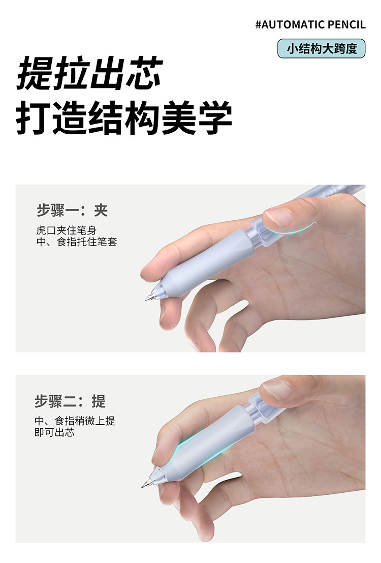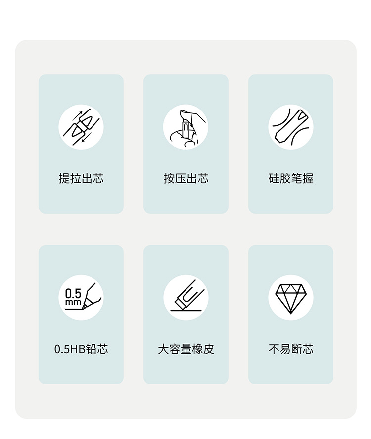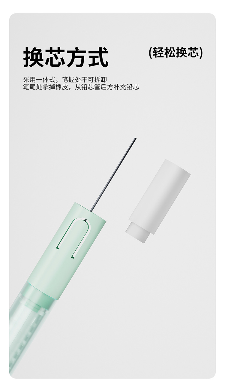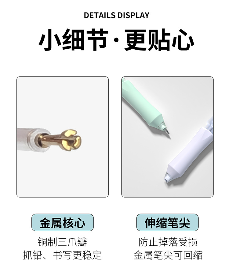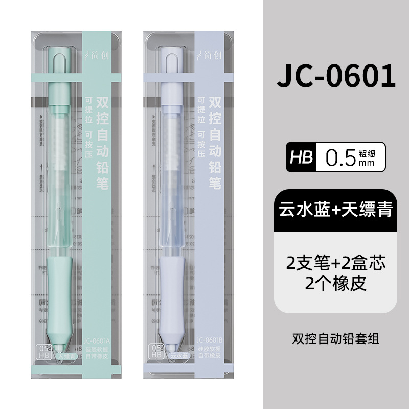 티라 펜슬 자동 누름식 이중 제어 저중심 지우개 세트 0.5HB 연속 필기 가능 누름식