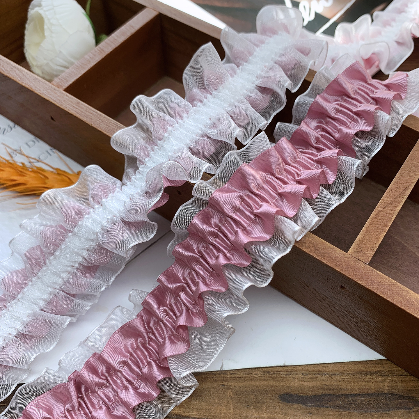小香风双层粉色弹力蕾丝衣服花边辅料装饰手工diy材