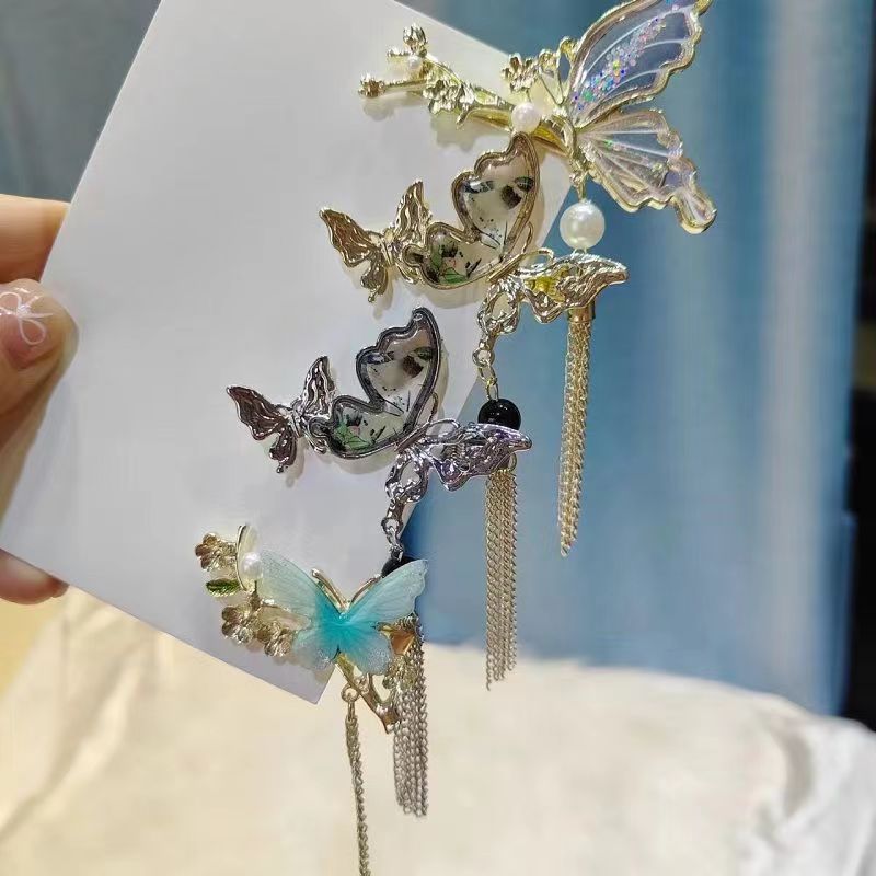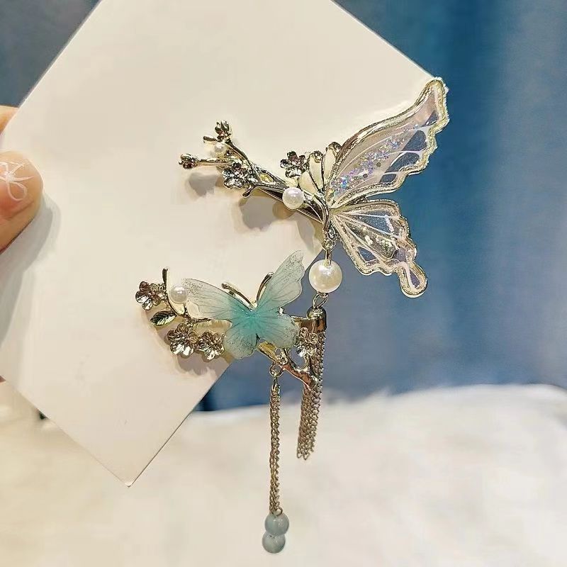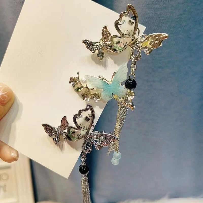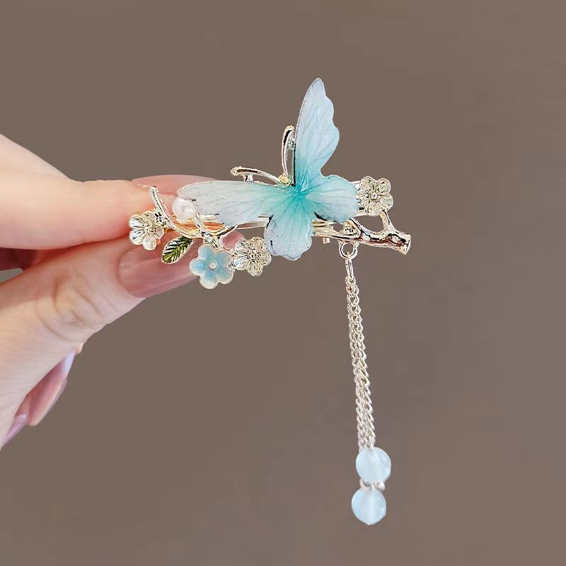 • [그라데이션 블루] 나비 태슬 사이드 클립