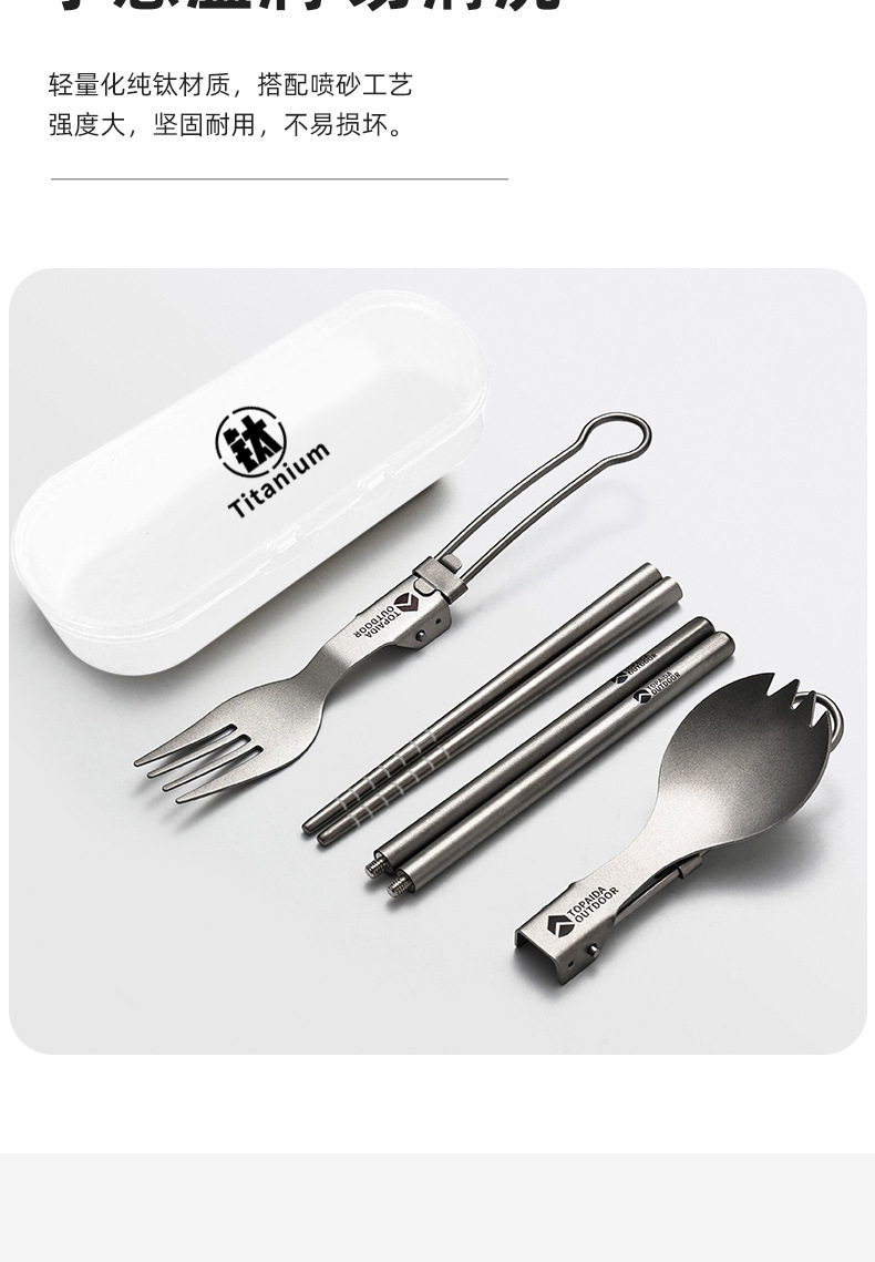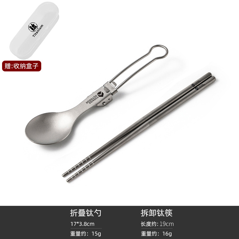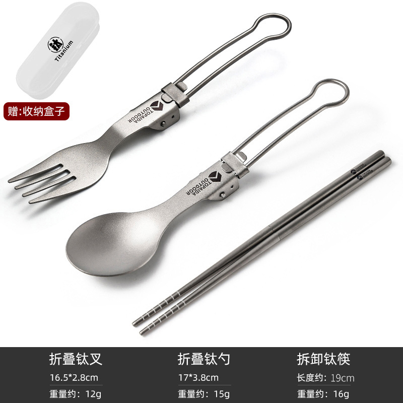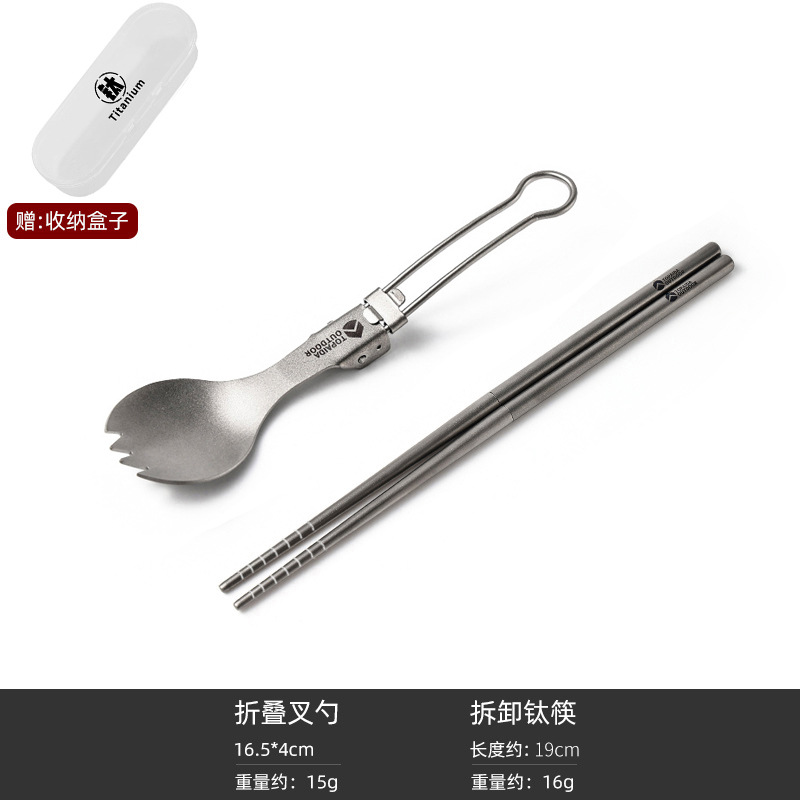 순수 티타늄 야외 휴대용 다기능 포크 스푼 캠핑 젓가락 티타늄 식기 캠핑 접는 숟가락 티타늄 합금 포크