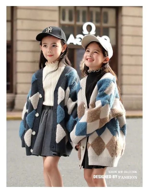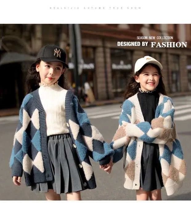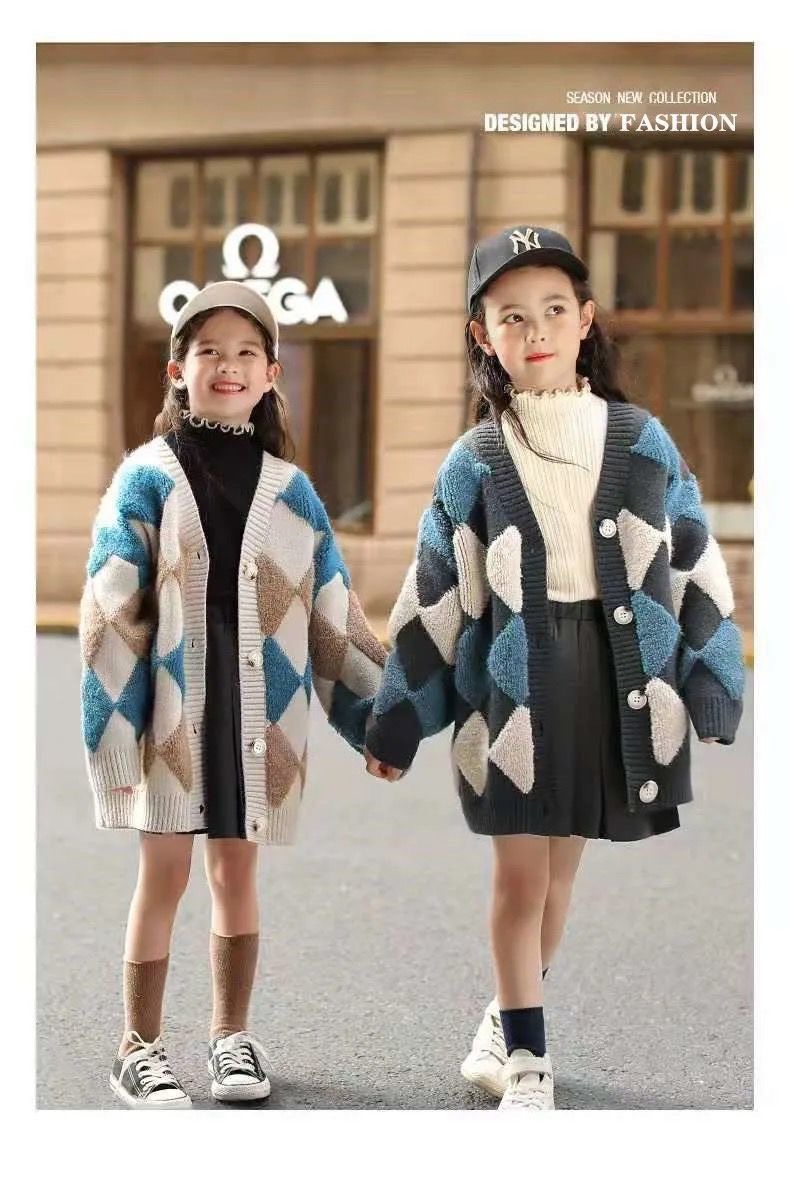 대외 무역 도매 2025 신상 여아 니트 가디건 코트, 세련된 봄 가을 중간 길이 아우터 스웨터 트렌드스토어 가기