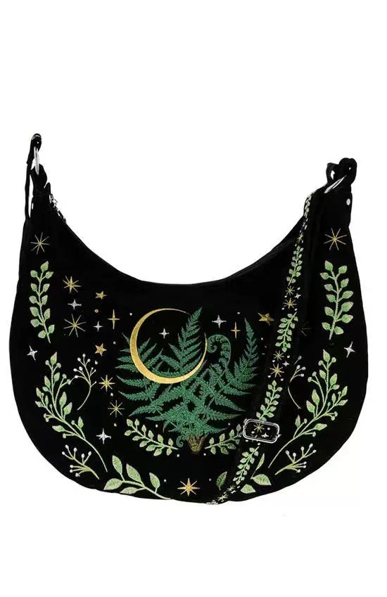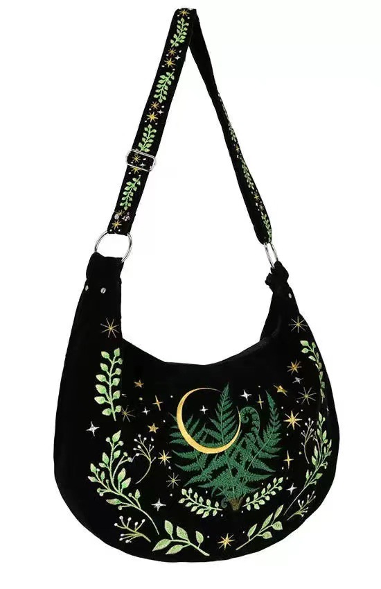 유럽 다크 고딕 마녀 식물 자수 플란넬 어깨 언더암 가방 빈티지 대용량 크로스 바디 백